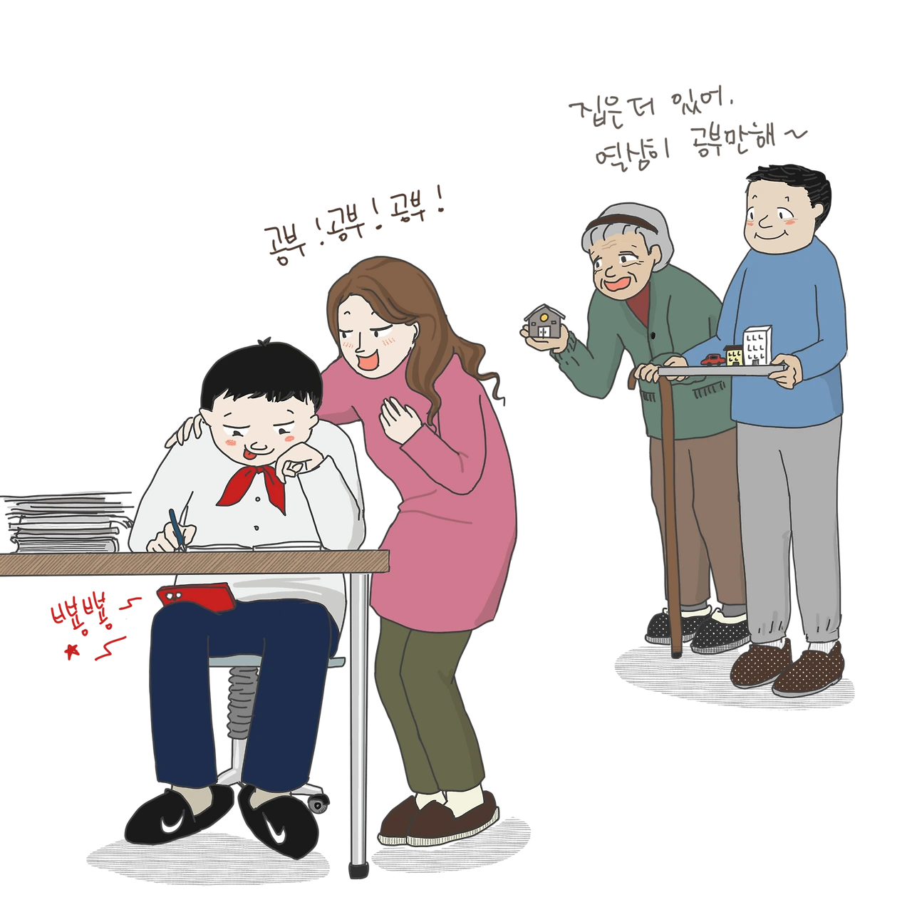 상해 할머니 할아버지들의 재력과, 아빠의 지지, 그리고 엄마의 적극성. 아이의 교육을 위해 온 가족이 열정적으로 노력합니다.