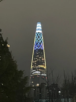 창문 밖으로 롯데타워가 보였다. 다신 못 볼 줄 알았던 롯데타워가 아름답게 빛나고 있었다.
