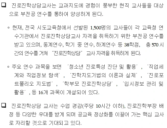 교육과학기술부 보도자료 <2011년부터 “진로진학상담”교사 자격 신설> 중 (2011.01.14.)