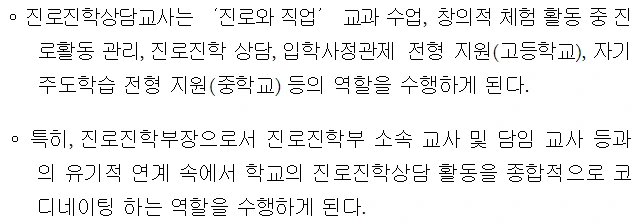 진로진학 상담교사. 학교에서 전문적이고 체계화된 진로 교육이 이루어져야 한다는 필요성에 따라 만들어진 자리.