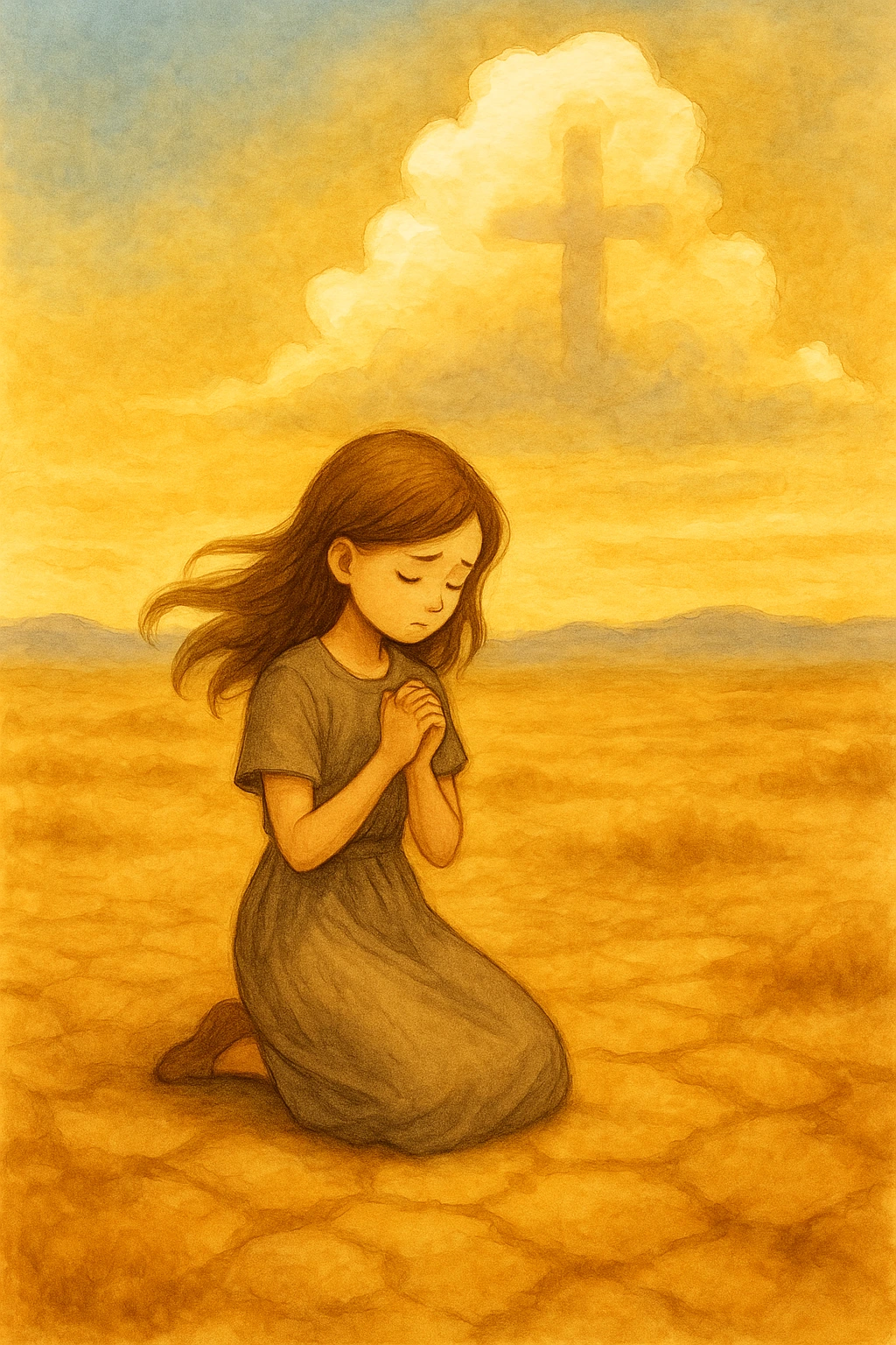 소녀는 조용히 무릎을 꿇고 기도했다.