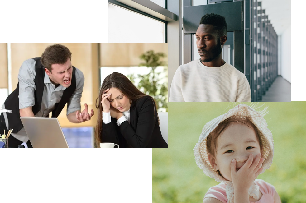 우선 천천히 아래 얼굴이 가려진 사진을 보고 감정과 표정을 유추해보자.