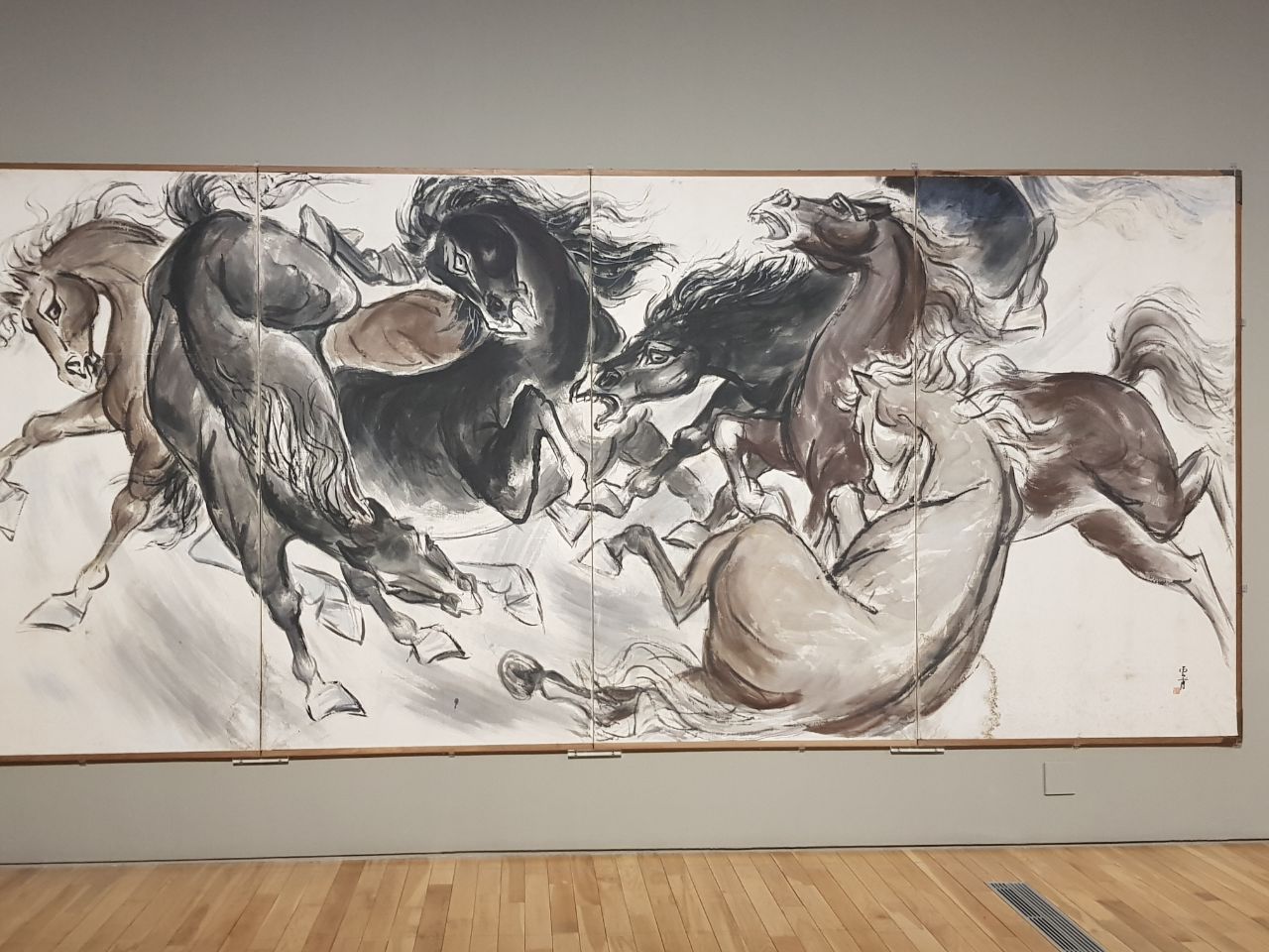 김기창의 <군마도>이다. 바라만 봐도 역동적이라 힘이 불끈 솟는다. 수묵 채색으로 거칠게 표현된 말들이 날뛰는 모습이다. 경주마가 아닌 야생마같아서 압도당하는 느낌이다.
