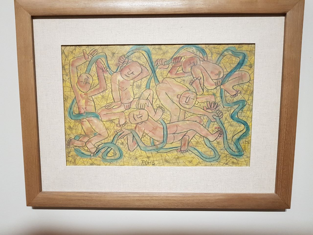 이중섭<다섯아이와 끈) 코와 성기의 표현이 익살스럽다. 발가락이 재미있고 손가락을 아주 크게 표현했다. 맨 아래 작가 싸인이 너무 정직하고 순수하다.