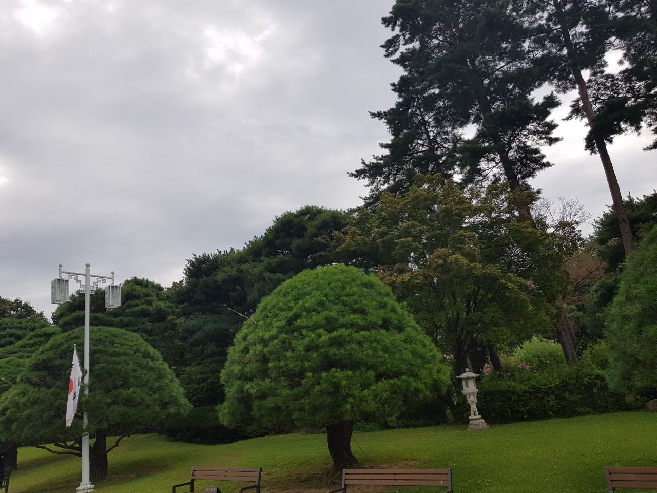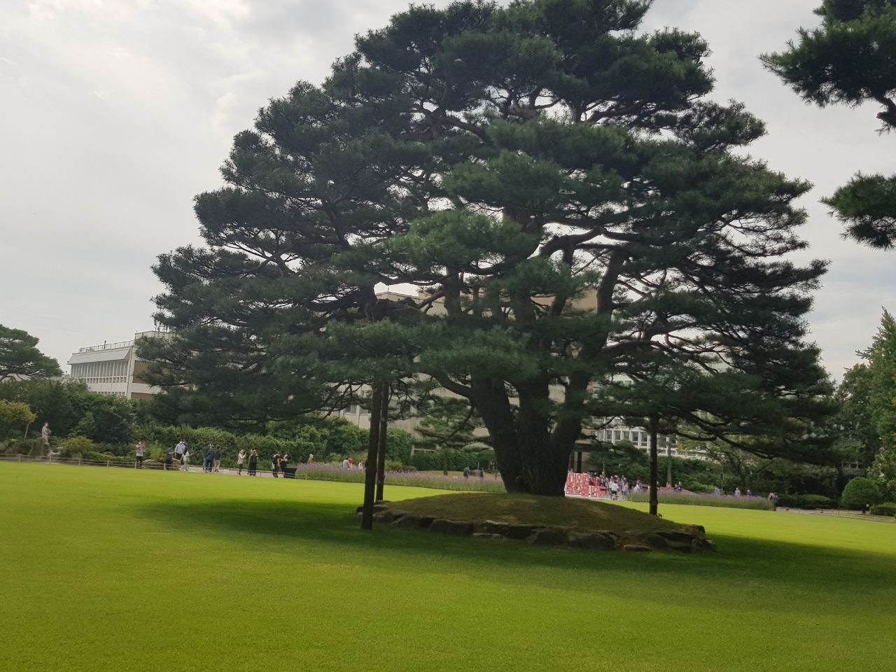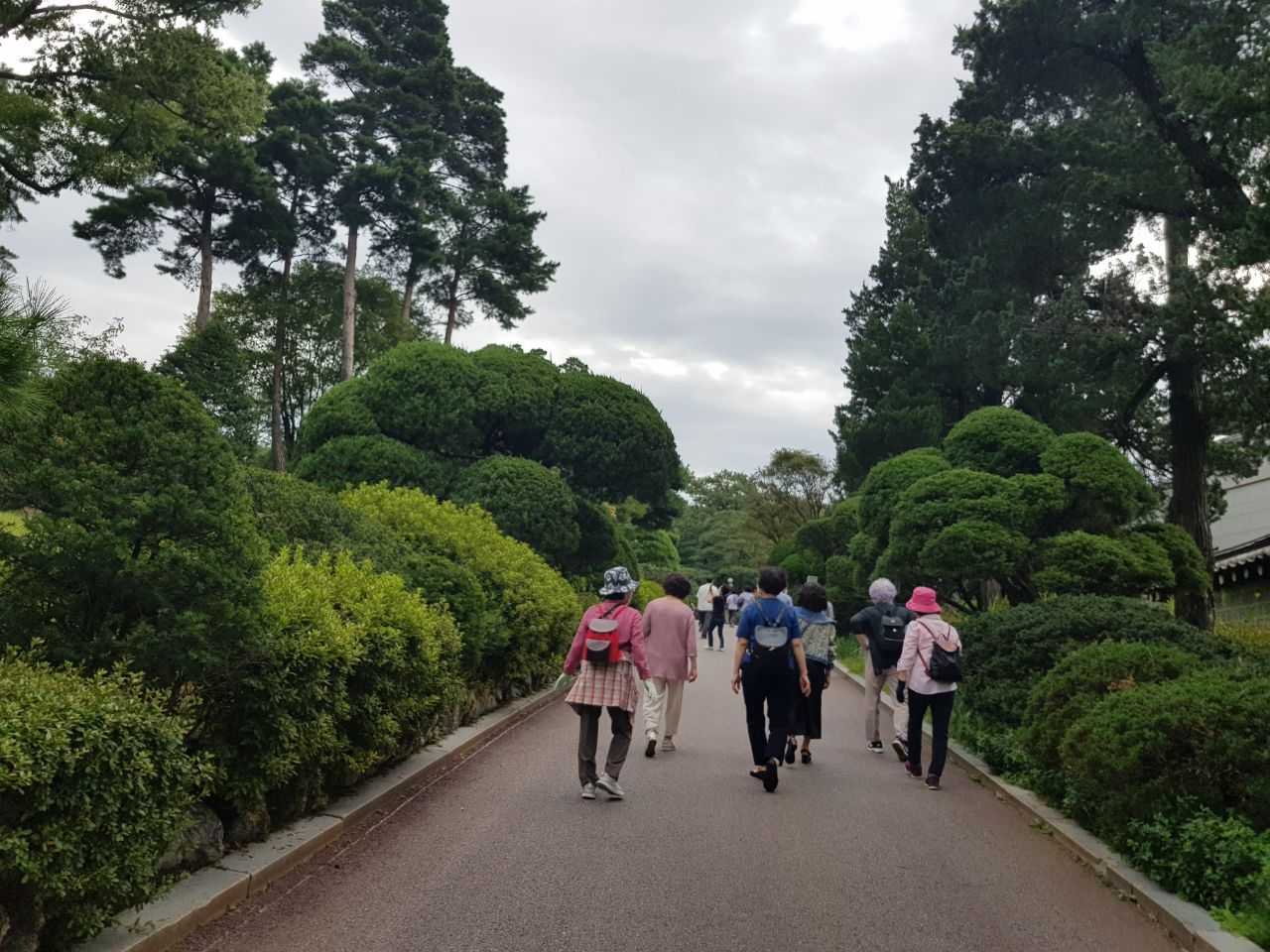 본관에서 나오니 올라오는 길 양쪽으로 일렬로 늘어선 정원수가 일품이었다. 같은 모양의 멋진 나무가 수십 그루 줄을 이어 서 있어 아름다웠다.