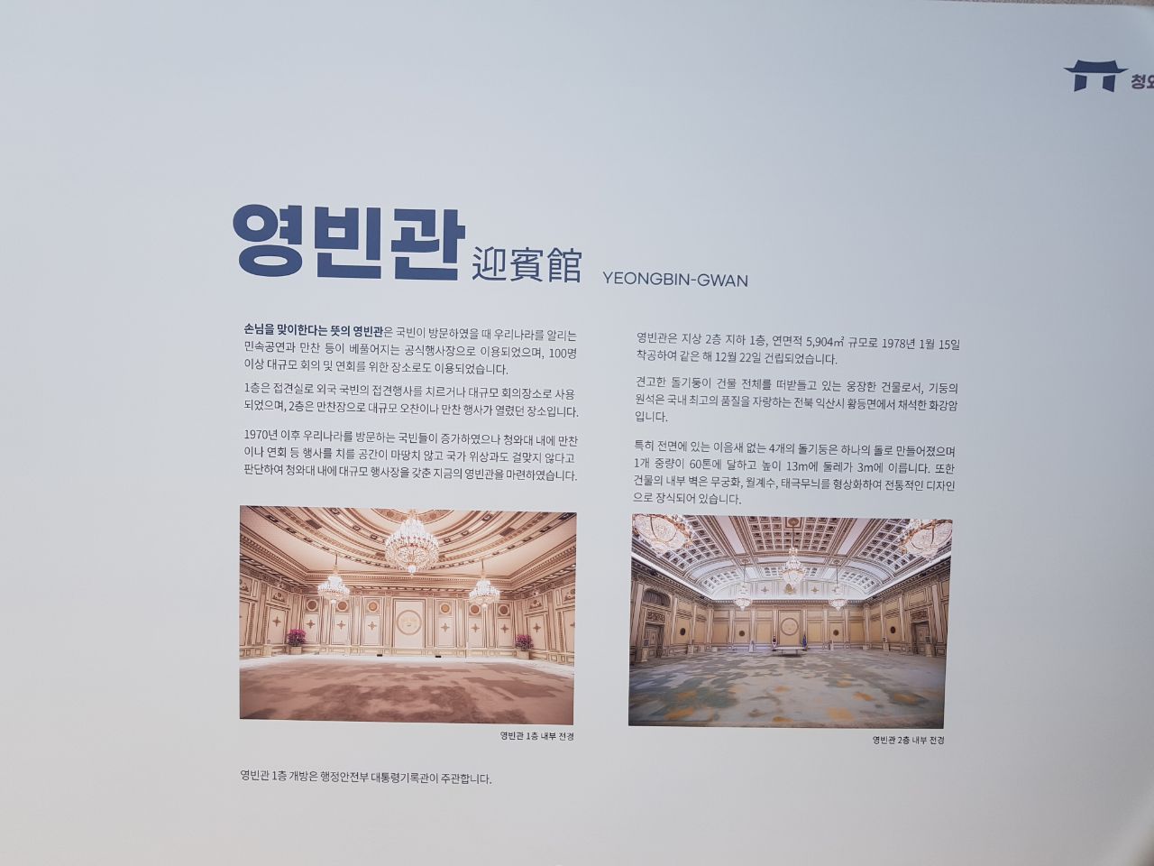 영빈관 내부로 들어서는 길도 복잡하지 않아 쾌적하다. 입구에서 영빈관 설명을 읽었다.