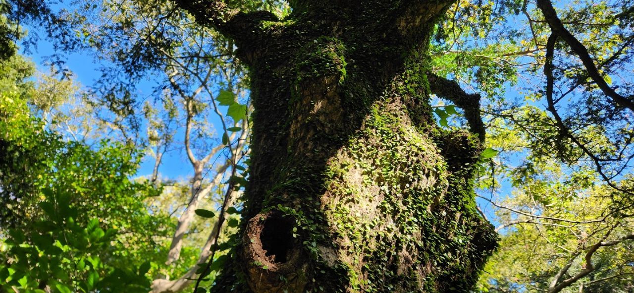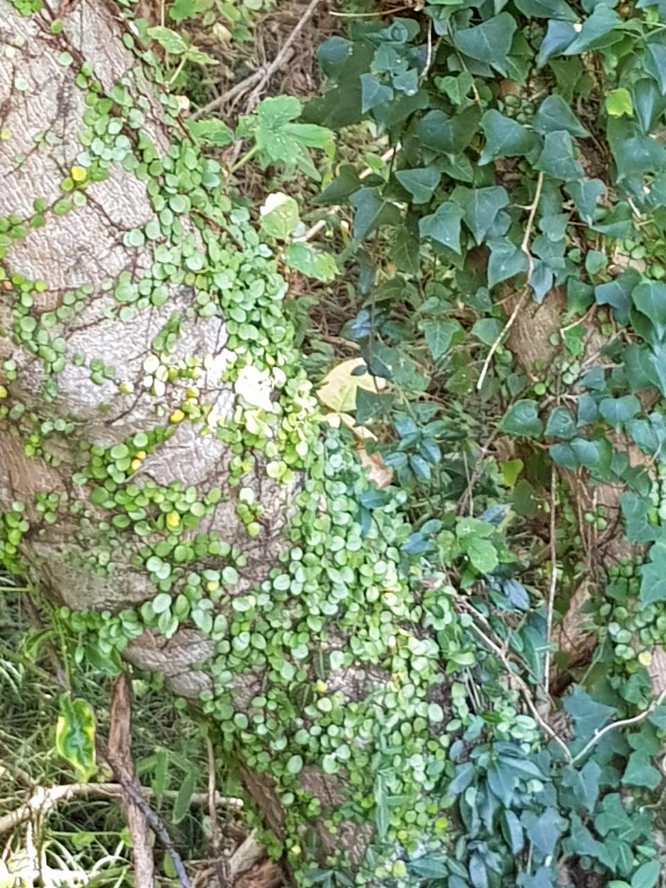아름드리나무가 긴 세월 상처를 입어 몸통을 베어 낸 그 자리에 다른 종의 줄기 식물에 양식을 주는 상생을 보니, 뿌듯하고도 눈물겹다. 덩쿨 식물이 너도나도 기어오르는 모습 보니, 이 나무의 습기와 영양분을 먹고 자란다는 생각에 깊은 사유에 빠진다. 그럼으로써 나무 겉모습이 아름답게 보이는 효과가 있으니 상부상조하는 아름다운 상생이다.