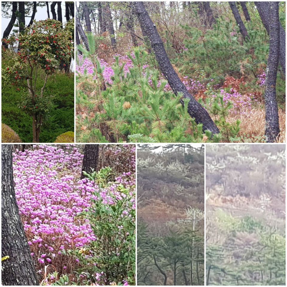 예쁜 데크 길을 따라가는데, 산에는 벌써 철쭉이 불붙었다. 바다에는 밀물과 썰물이 있지만, 산에도 밀물처럼 철쭉 불이 밀려든다. 이 기막힌 봄을 어쩌랴. 함께 보지 못하여 아쉬운 얼굴이 여기저기서 고개를 든다.