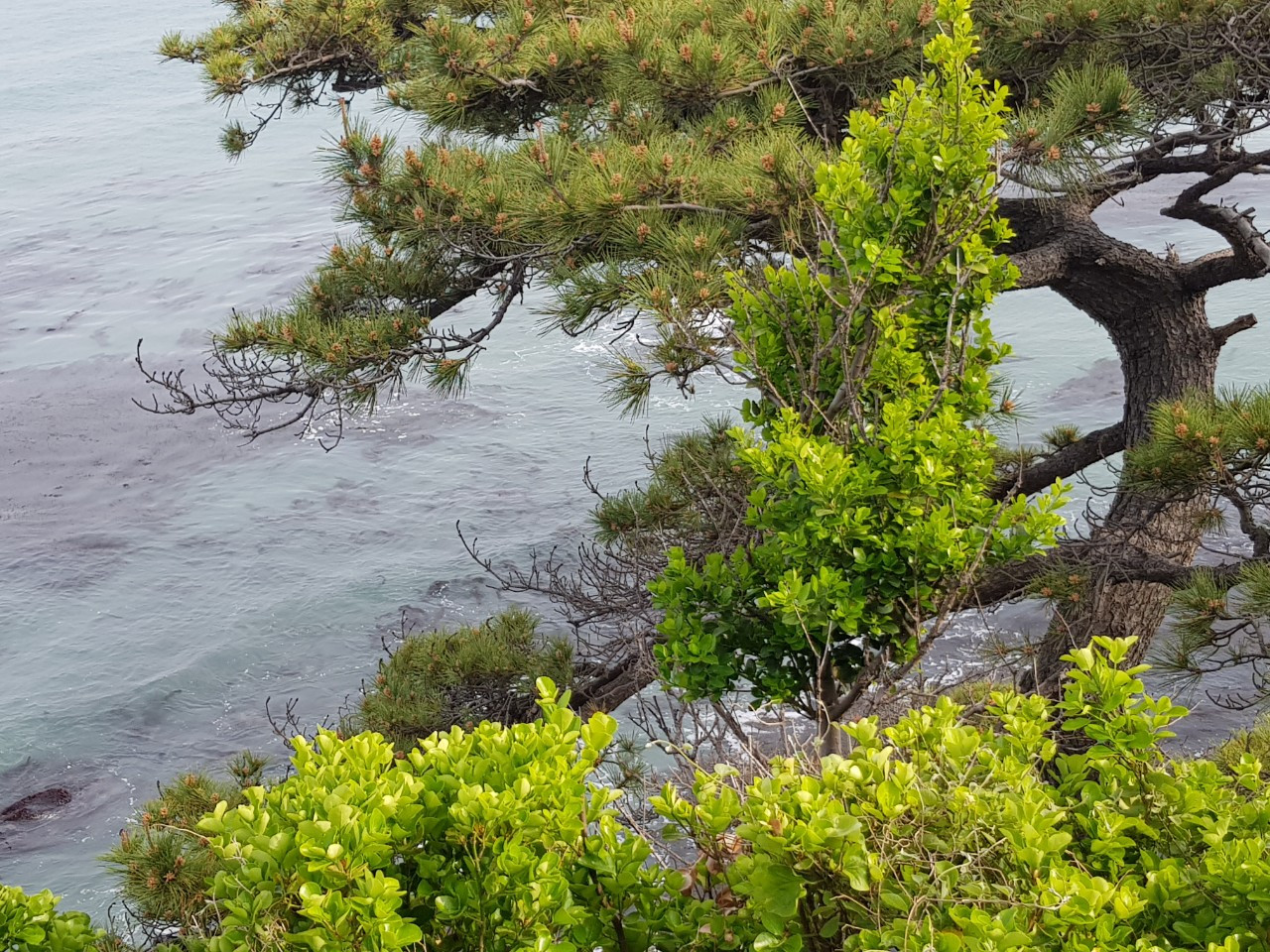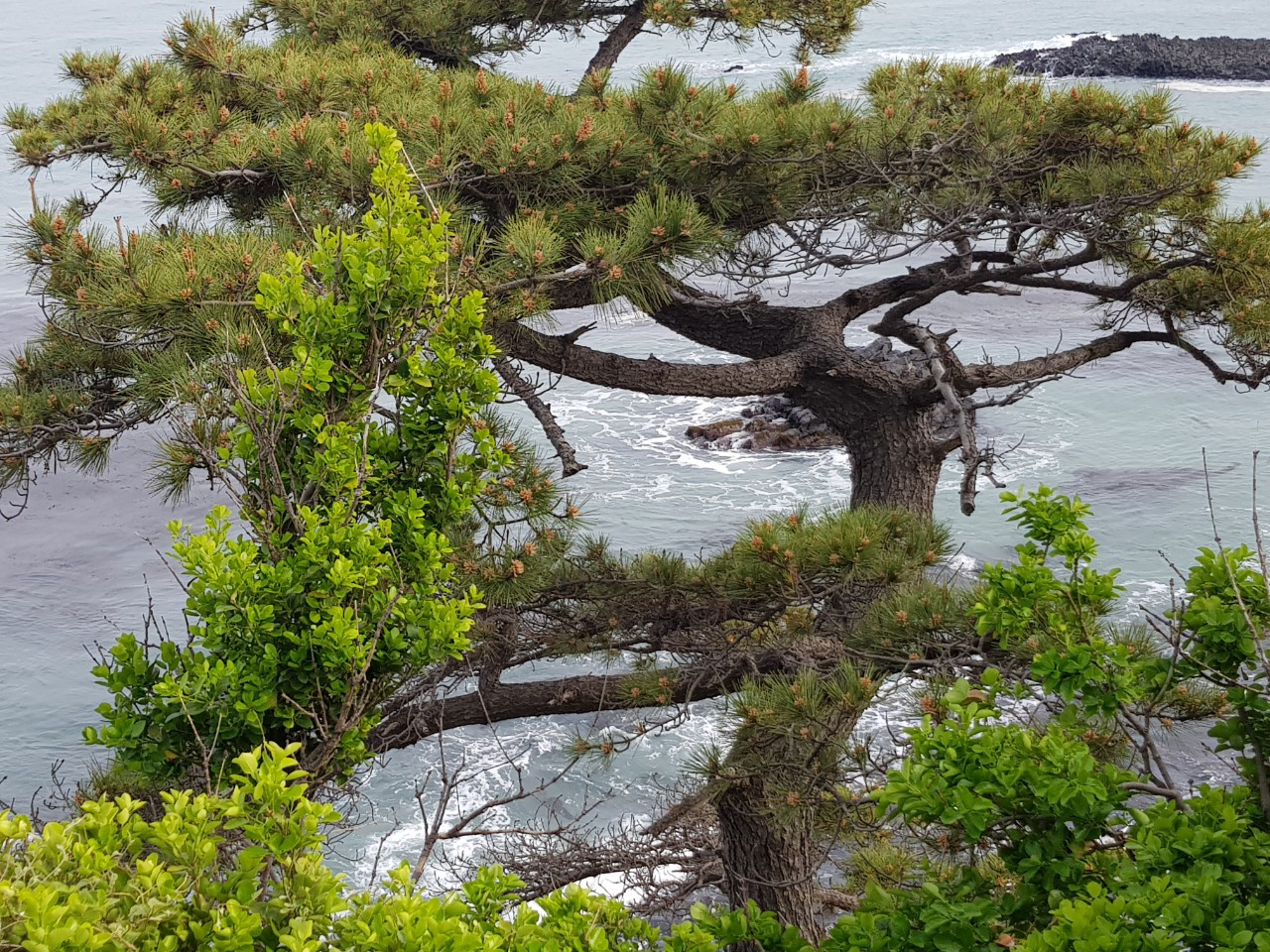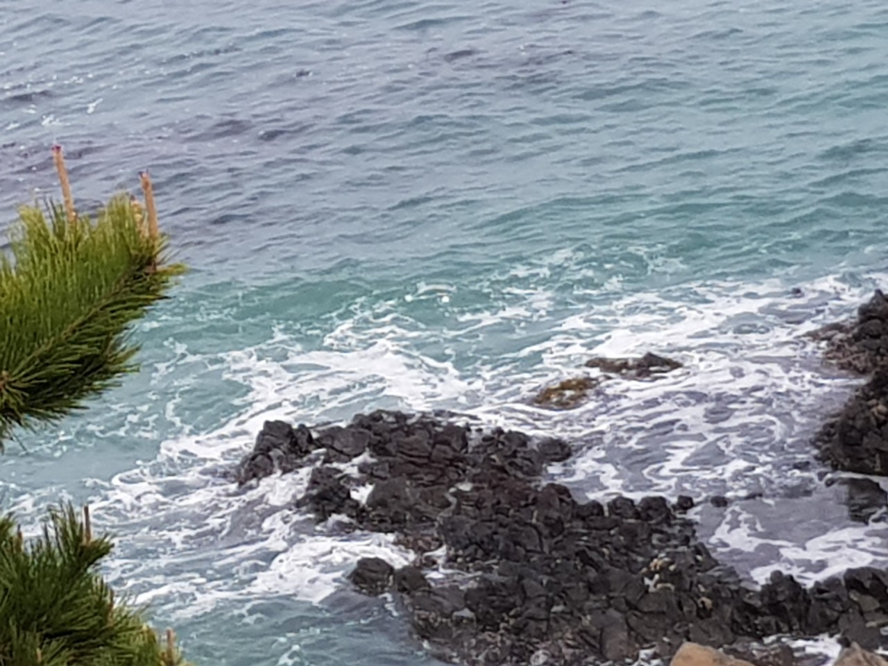 전망대 가는 길에는 출렁다리도 있다. 내려다보는 바다가 완전 옥색이다. 소나무 그늘이 우리의 이마에서 흔들리고 있다. 전망대는 가는 날이 장날이라고 공사 중이다. 올해 유월 말까지 공사 예정이라고 한다. 제주도에서 본 주상절리와는 느낌이 전혀 다르다. 멀미의 영향인지 다리에 쥐가 나기 시작한다. 여기서 하룻밤 자고 싶은 마음이 굴뚝같으나 막내 체면에 스스러워 말을 삼킨다. 주상절리 부근에서 늦은 중식으로 아귀찜을 주문했다. 맵지도 않고 녹말가루만 잔뜩 버무려서 조약돌 삶은 맛이다. 주중이라 다른 식당들이 아예 문을 열지 않은 탓이다. 가성비 완전 꽝이다. 오늘은 일정을 잘못 짠 관계로 일진이 좋지 않은 날이다.