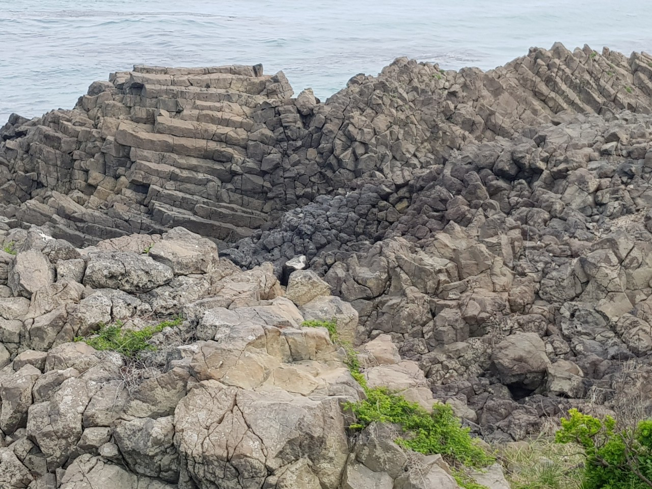 위로 솟아서 부채꼴을 형성한 절리도 대단하다. 자로 잰 듯이 정확한 층을 이루며 형성되어 있다.