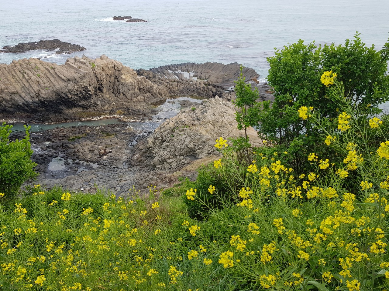 아름다운 바닷길 따라 펼쳐지는 장관은 주상절리 주변에도 이어진다. 몽돌 길, 야생화길, 등대길, 데크길 등 주상절리가 보이는 해안을 따라 산책하다 보니 해당화가 방긋 볼을 붉히며 아늘아늘 춤을 춘다. 바위와 파도가 이야기하는 것도 들리고 꽃의 숨소리도 들린다.