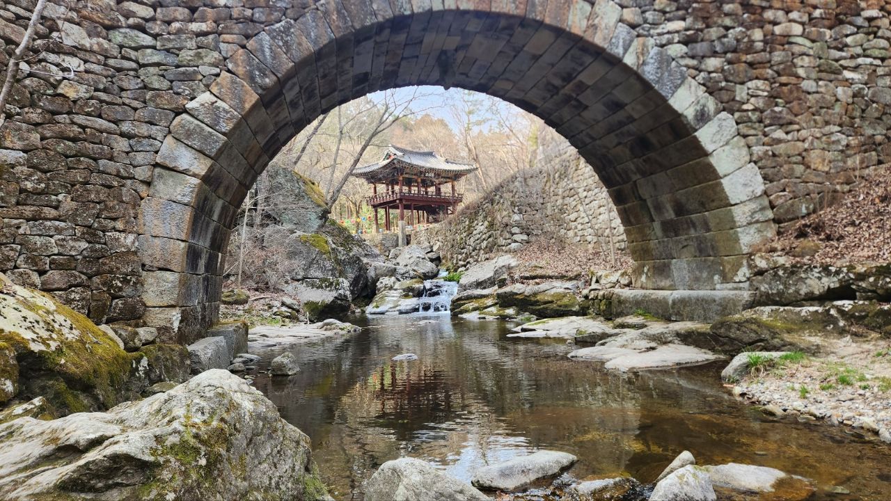 선암사 선암매를 알현하러 오르는 길 왼편으로는 계류가 흐른다. 진입로에 무지개다리인 승선교의 운치가 절경이다. 현존하는 조선시대의 다리 가운데 가장 아름다운 아치교로 유명하다. 뒤편으로 드러난 이층 누각은 강선루다. 글자 뜻 그대로 신선 한 분이 하강한 듯 고고하다.