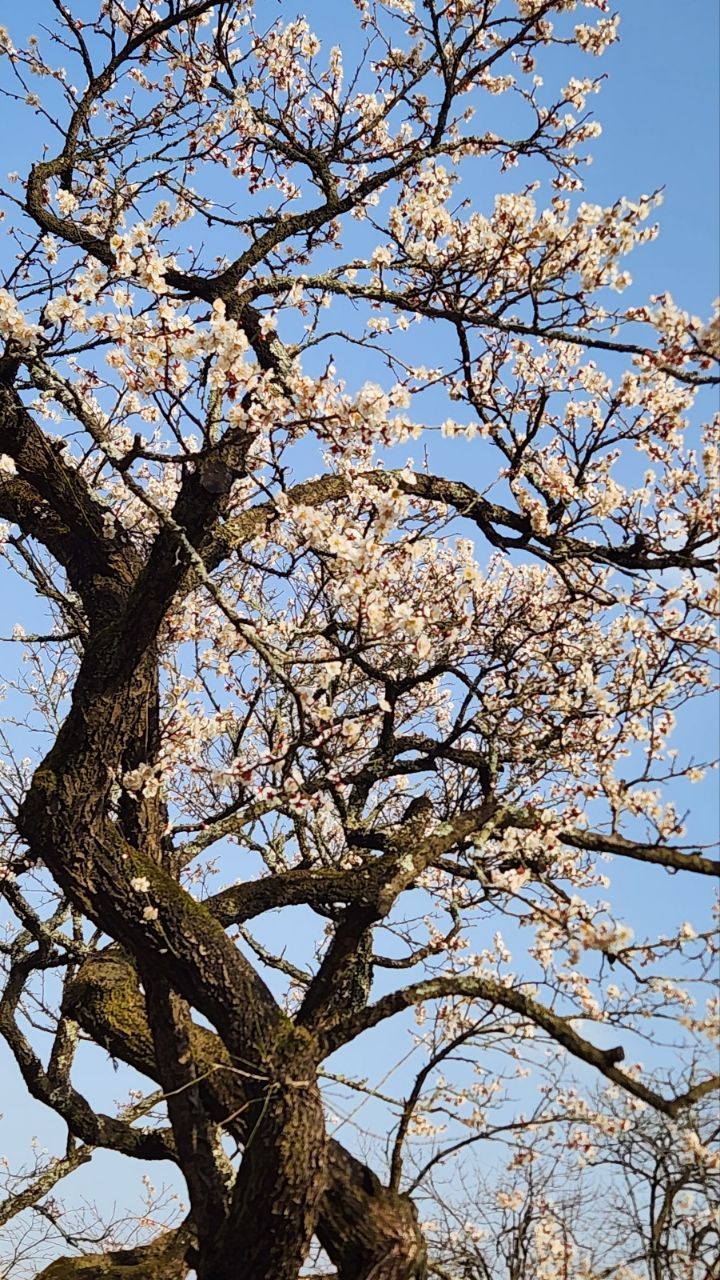드디어 선암매를 살핀다. 가히 600년의 세월을 견딘 나무답게 꽃은 피었으나 몸통은 이끼가 뒤덮었고 전지 수준이 아닌 가지가 잘려나간 모습이 애달프다. 사람이 팔이 잘린 모습이랄까. 멜라닌색소의 공격인지 온통 숯검댕이 색의 몸체에 퍼석퍼석한 골다공증 같은 나무에서도 꽃은 피어 있다. 나무도 피돌기가 안되어 이끼가 끼는 건지 안타깝다.