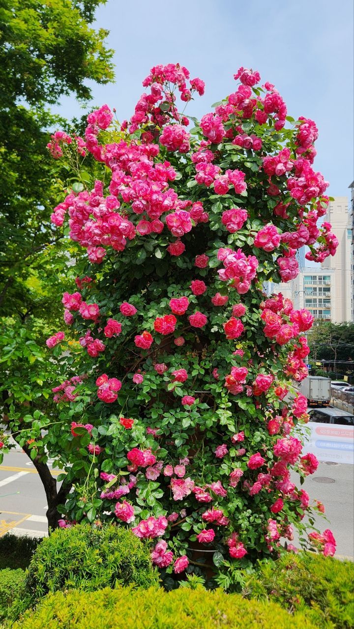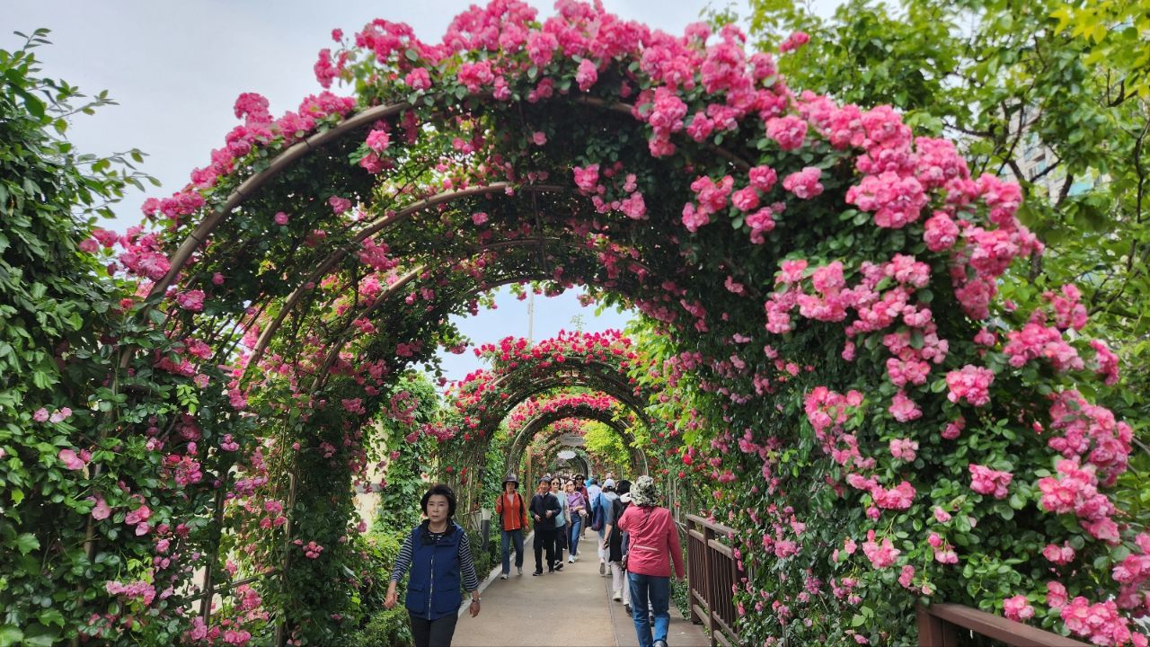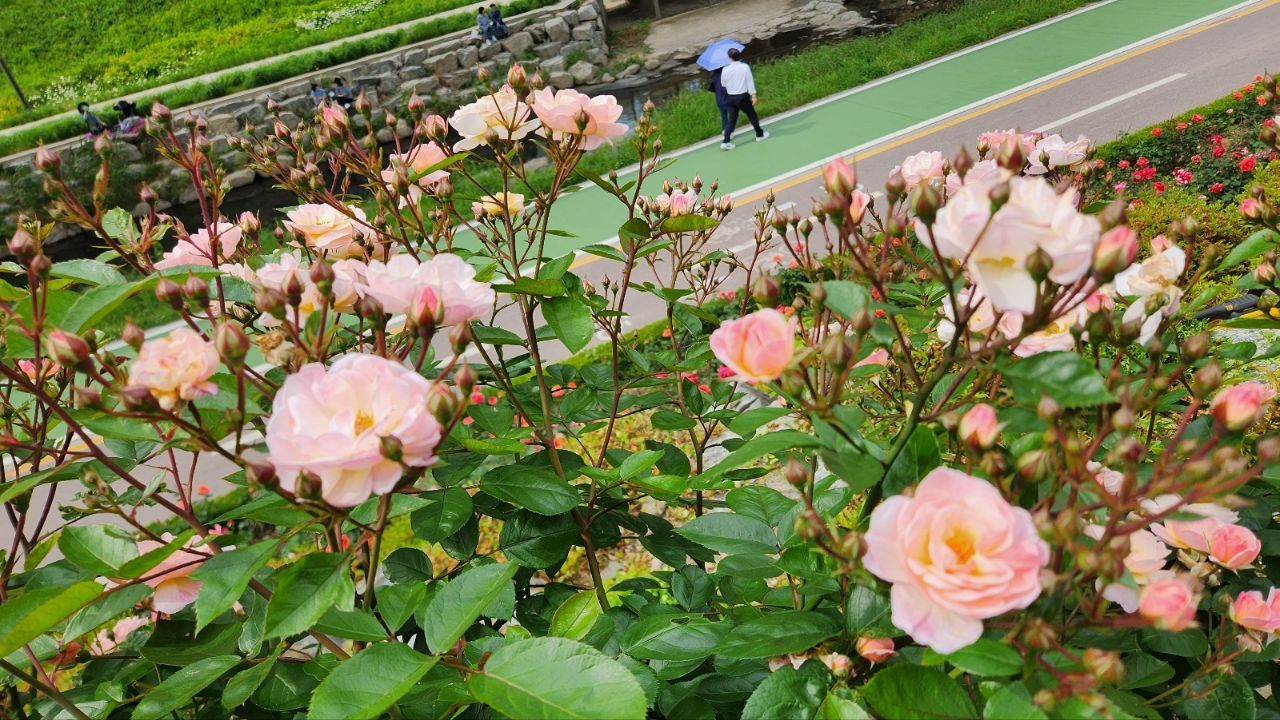 중랑구 장미 축제에 갔다. 지하철 7호선 태능입구역 8번 출구로 나가니 바로 장미 둑방이 나온다. 천변의 둑을 이용해 이런 공원을 조성한다는 지자체의 앞서간 행정이 바람직하다. 지자체장 잘 만나니 주민의 생활환경이 업그레이드 된다. 우리 일행만도 벌써 '바다정식' 점심 식대로 45,000원을 보탰으니, 지역 경제가 사는것은 불보듯 뻔하다. 이 동네 주민인 지인은 매일 아침 이 둑을 걷는다고 한다. 매일 이 꽃속에서 행복을 구가한다니, 복받은거다. 장미 향에다 시원한 바람의 상쾌함에 가슴이 부푼다. 장미의 종(種)이 몇 천가지일까. 대접만한 겹꽃의 화려함에 이어 아주 납작한 홑꽃도 나름 청순미가 있다. 터널을 만드는 줄장미와 옆으로 가지를 뻗는 나무형 등 적재적소에 심어진 장미 여러 종류가 끝도 없이 이어진다. 5.4키로라고 하니 중랑구 천변 시작부터 끝까지인가 보다. 데크를 달아내어 길을 넓힌 부분도 있고, 지금도 계속 장미를 식재하고 있는 모습도 보인다. 천변을 준설 작업한데다, 장미 공원을 조성하여 나들이객들이 한껏 즐기고 있다. 중랑구 공무원들의 노고가 엿보인다. 내가 관계 요로의 책임자라면, 아주 의미있는 큰 상을 내리고 싶다. 장미의 향에 취해 두 시간여를 꽃속에 묻혀서 "예쁘잖아/예쁘잖아/ 너무 예쁘잖아/~~~" 하고 요즘 대세인 트롯을 흥얼거리고 다녔다.