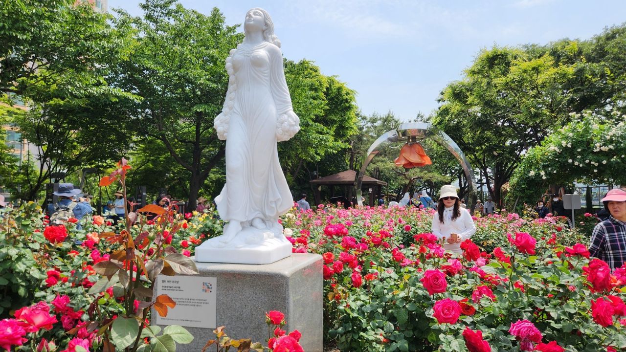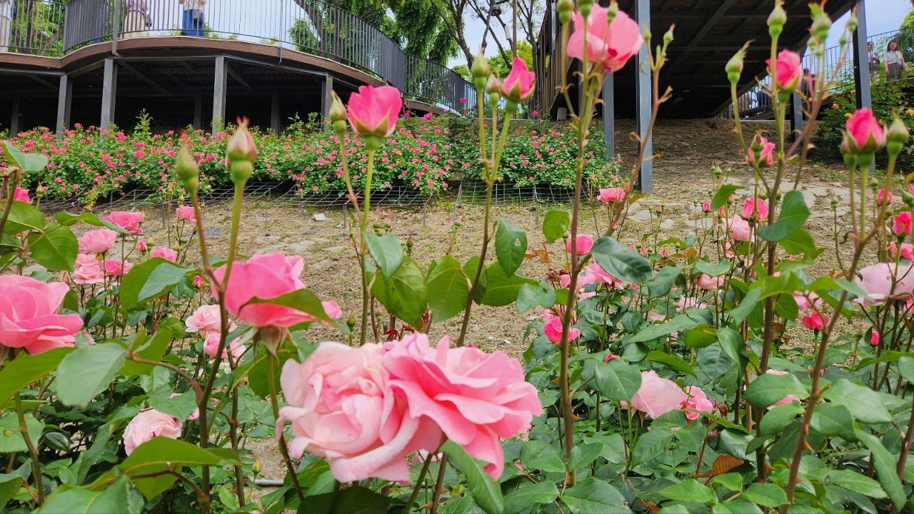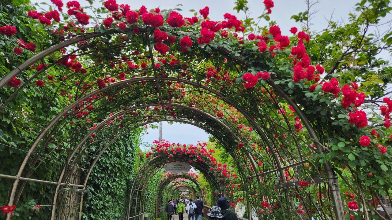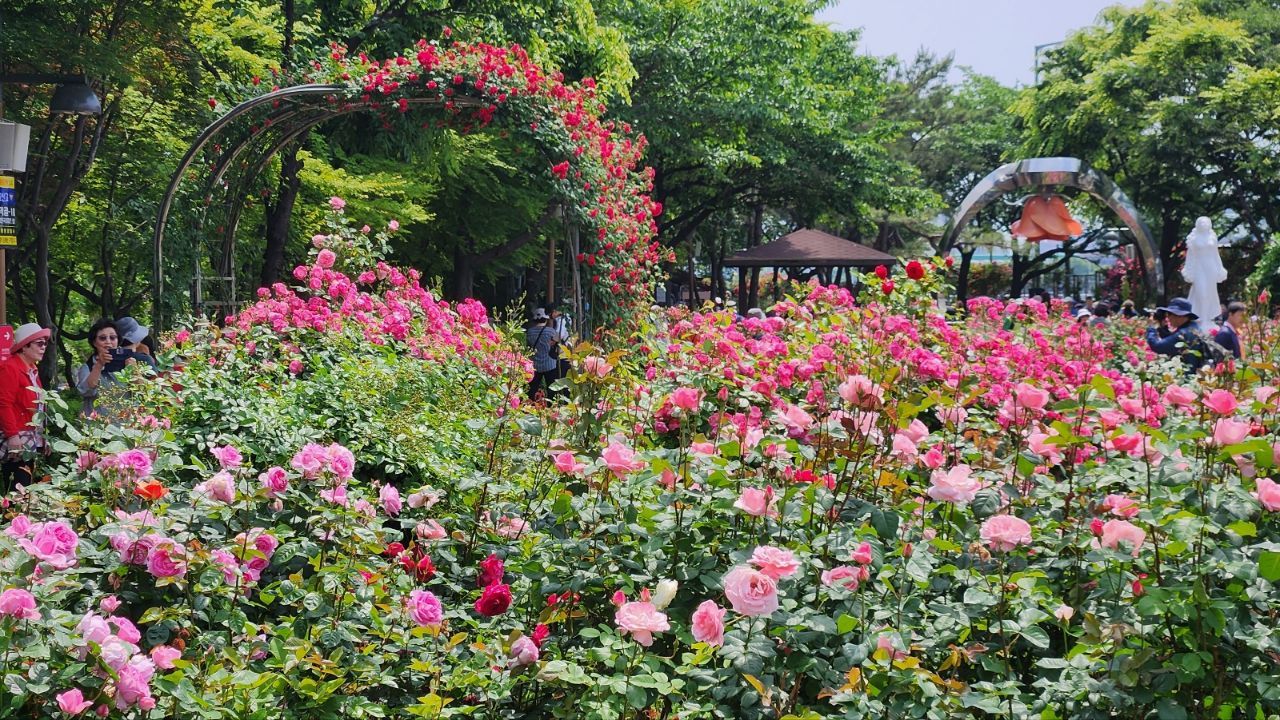중랑구 장미 축제에 갔다. 지하철 7호선 태능입구역 8번 출구로 나가니 바로 장미 둑방이 나온다. 천변의 둑을 이용해 이런 공원을 조성한다는 지자체의 앞서간 행정이 바람직하다. 지자체장 잘 만나니 주민의 생활환경이 업그레이드 된다. 우리 일행만도 벌써 '바다정식' 점심 식대로 45,000원을 보탰으니, 지역 경제가 사는것은 불보듯 뻔하다. 이 동네 주민인 지인은 매일 아침 이 둑을 걷는다고 한다. 매일 이 꽃속에서 행복을 구가한다니, 복받은거다. 장미 향에다 시원한 바람의 상쾌함에 가슴이 부푼다. 장미의 종(種)이 몇 천가지일까. 대접만한 겹꽃의 화려함에 이어 아주 납작한 홑꽃도 나름 청순미가 있다. 터널을 만드는 줄장미와 옆으로 가지를 뻗는 나무형 등 적재적소에 심어진 장미 여러 종류가 끝도 없이 이어진다. 5.4키로라고 하니 중랑구 천변 시작부터 끝까지인가 보다. 데크를 달아내어 길을 넓힌 부분도 있고, 지금도 계속 장미를 식재하고 있는 모습도 보인다. 천변을 준설 작업한데다, 장미 공원을 조성하여 나들이객들이 한껏 즐기고 있다. 중랑구 공무원들의 노고가 엿보인다. 내가 관계 요로의 책임자라면, 아주 의미있는 큰 상을 내리고 싶다. 장미의 향에 취해 두 시간여를 꽃속에 묻혀서 "예쁘잖아/예쁘잖아/ 너무 예쁘잖아/~~~" 하고 요즘 대세인 트롯을 흥얼거리고 다녔다.