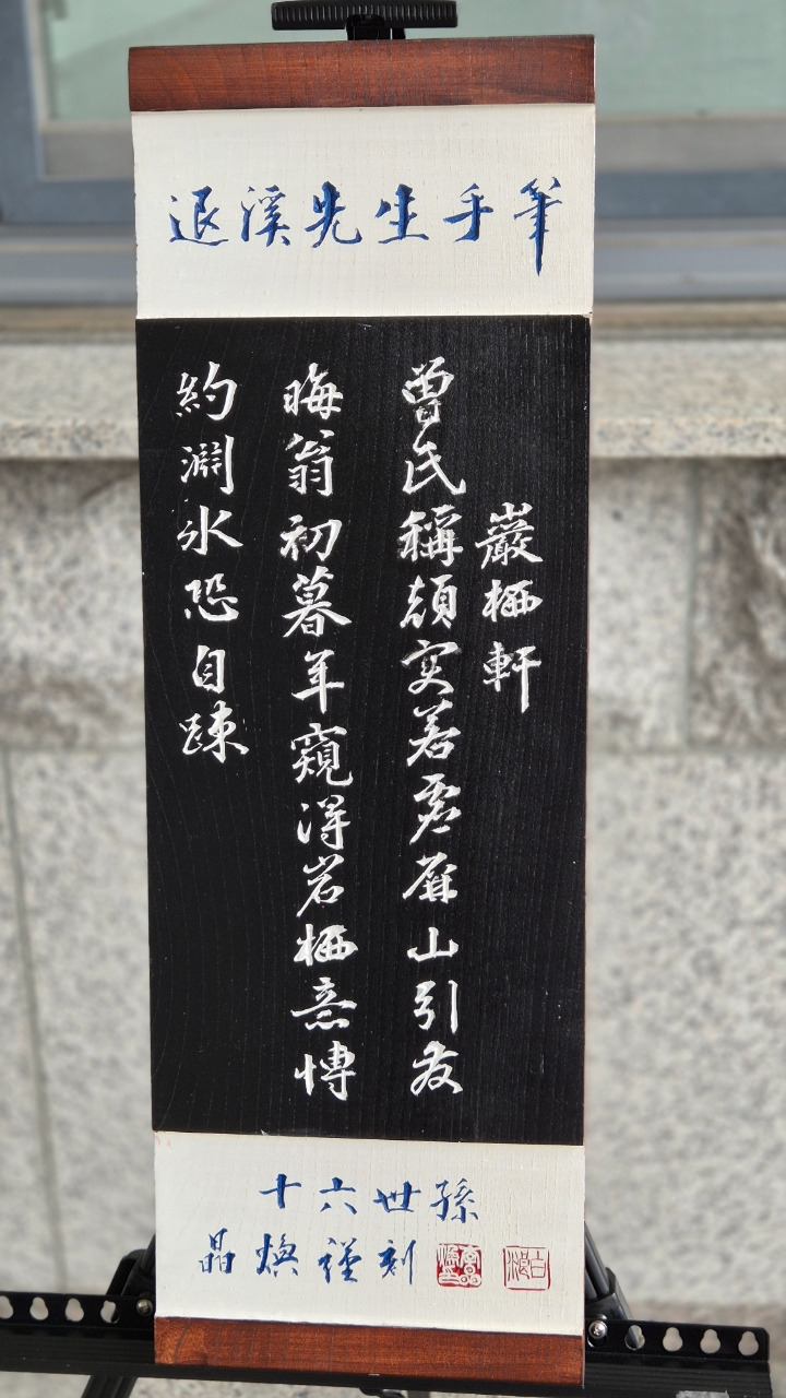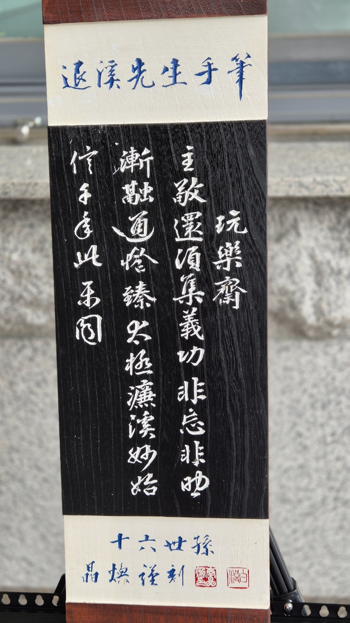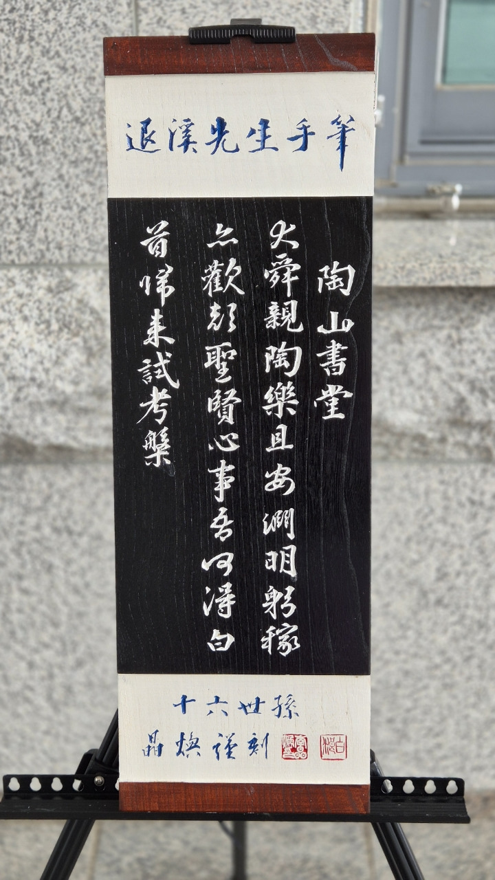 국학진흥원 현관 입구에 퇴계 선생 서각 작품이 전시되어 있다.