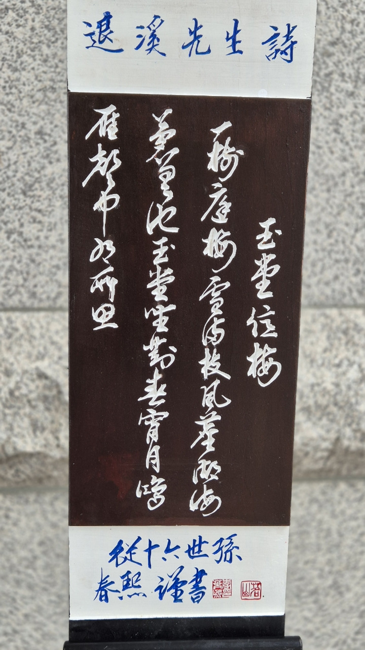 <옥당억매> 이 시는 퇴계선생이 42세에 홍문관 부교리로 있을 때 봄에 옥당에서 숙직하고 있으면서 매화를 보고 지은 시다. 선생의 고결하고 단아한 마음이 깃들어 있음을 볼 수 있다.