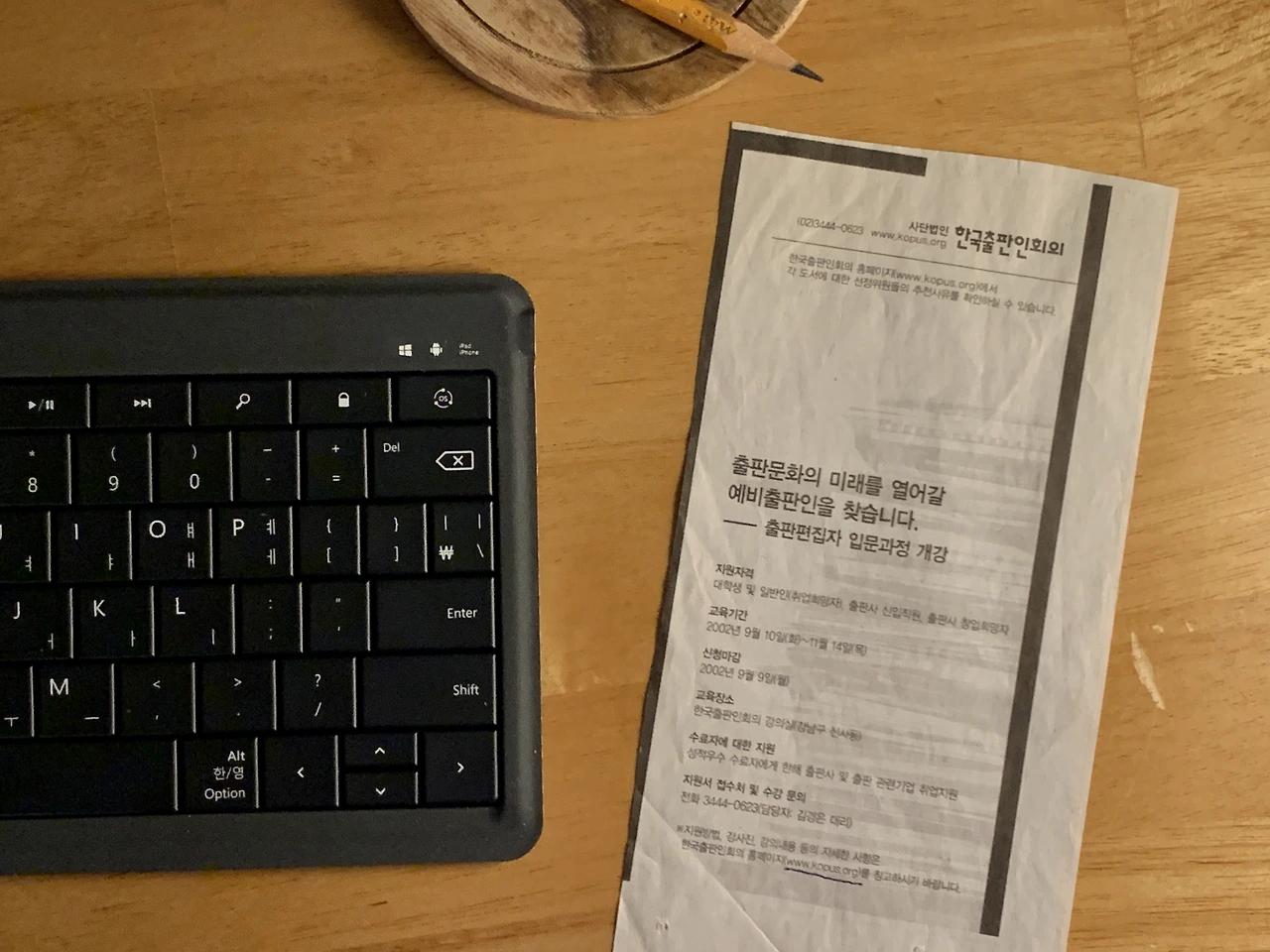 뭘 해야 할지 막막했다. 기껏 생각해낸 방법은 학위를 따는 것. (영어도 못하면서) 호주에 있는 필름스쿨의 촬영전공 1년 과정을 목표로 결심하고는 계획을 세웠다. 이어진 생각의 흐름은 단순했다. 떠나려면 돈이 필요하다 → 알바로는 큰돈 못 모으니, 취직하자 → 국문과이니 출판사가 유리하겠지 → 출판사에 취직하려면 어떻게 해야 하나. 그러던 중 신문에서 우연히 광고를 발견했다. “출판 편집자 입문과정 개강”