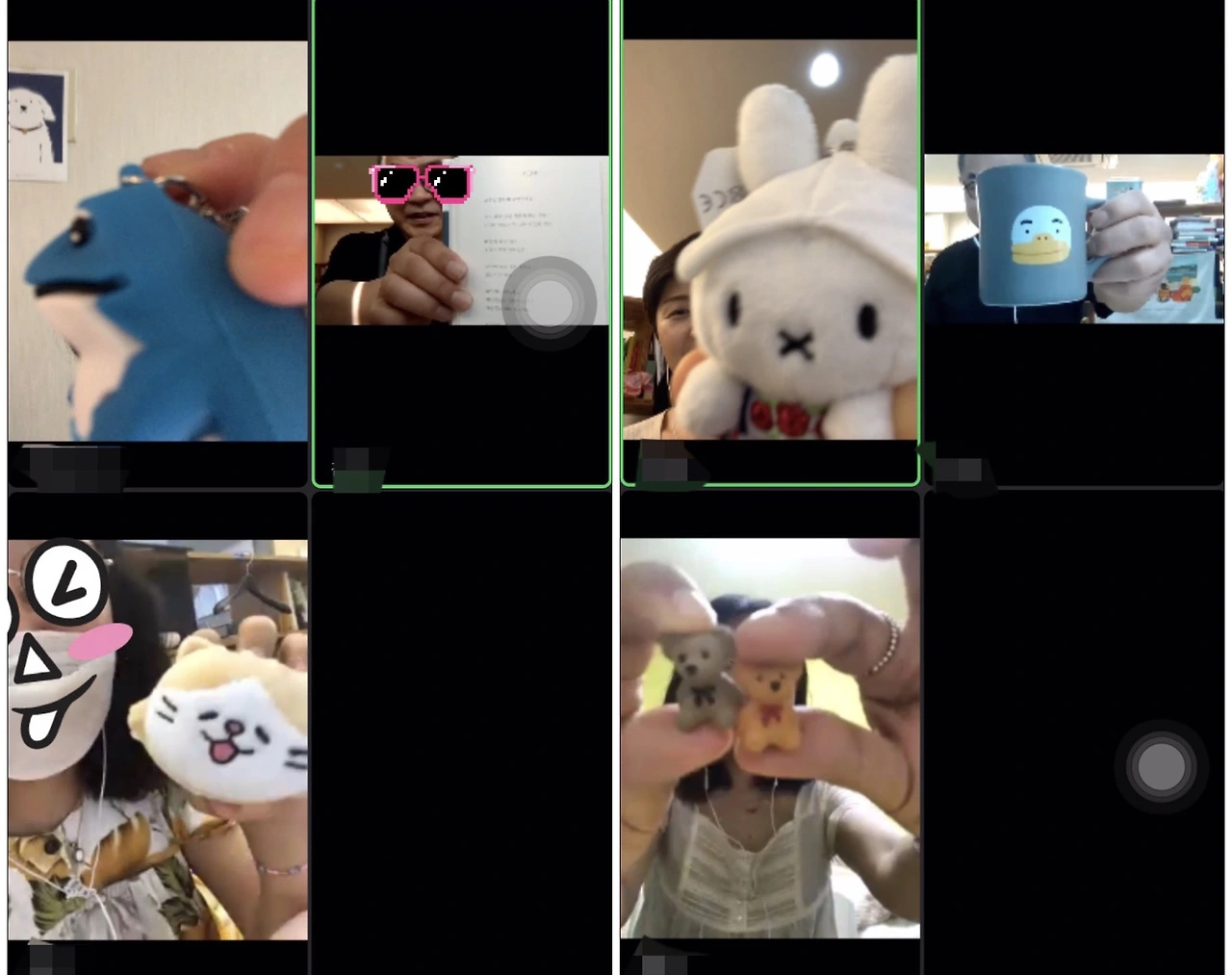 특히 비대면 낭만적 스크럼에는 이에 걸맞은 새로운 세리머니도 등장했는데, 한 사람의 발표가 끝나면 각자 주변에 있는 인형이나 소품 등을 카메라에 들이대며(!) 응원해주기 시작한 거다. 이렇게 말이다.