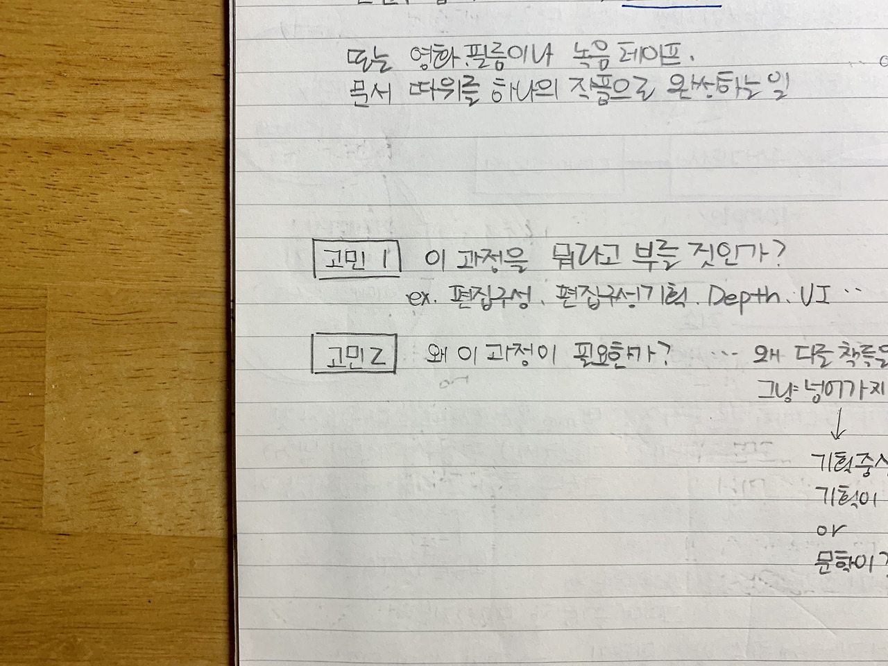 그때부터 나의 일정한 방침을 찾기 시작했다. 방법은? 나와의 대화!(음?) 노트에 질문을 적고 거기에 답을 했다. 이때 모든 질문의 전제는 '나라는 편집자'의 생각과 경험 내에서라는 것. 예를 들면 이런 질문이었다.