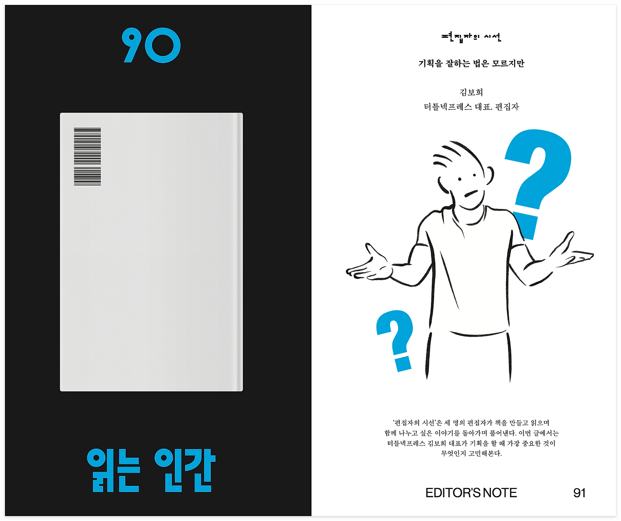 그런데 돌이켜보면 그건 질문이 아니었어요. 일종의 항의였습니다. 처음 책을 만들기 시작했을 땐 만든 책이 서점에 놓인 것만으로도 기뻤어요. 그런데 자연스레 점점 더 욕심이 생겼습니다. 더 좋은 책을 만들고 싶다, 더 많은 사람이 보면 좋겠다, 더 잘 팔리면 좋겠다. 그럴수록 서점에 놓여 있는 다른 책들이 반짝여 보였어요. 근사한 책도, 잘 팔리는 책도, 독자들의 지지를 듬뿍 받는 책도 참 많았습니다. 나도, 그런 책을 만들 수 있을까. 선망과 질투, 바람이 뒤섞인 마음으로 기획이라는 걸 했어요. 그런데, 도통 모르겠는 거예요. 회사에서 기획 회의라는 것도 하는데, 기획안도 쓰는데, 심지어 명함에는 내가 기획편집자라고 쓰여 있는데 ‘기획’이 정확히 무엇인지, 잘하려면 어떻게 해야 할지 모르겠더라고요.
