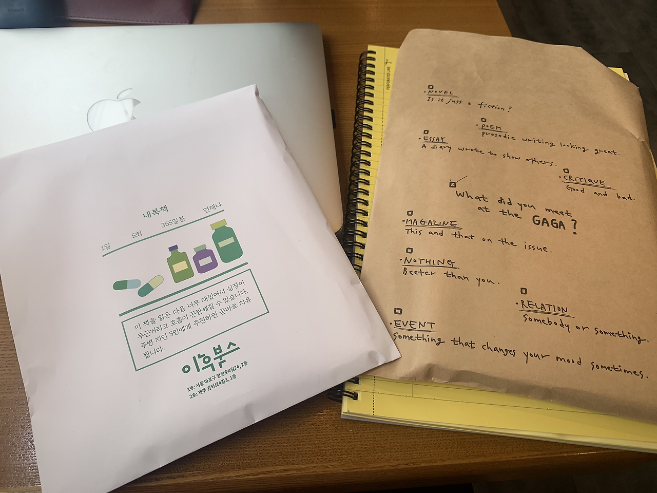 독립서점, 기획의 중요성, 제목 만들기, 저자 소개 등 독립출판을 하는 과정에서 필요한 전반에 관한 내용이었다. 이런 게 독립출판이구나 하는 감을 잡을 수 있었다. 수업 말미 즈음, 작가님께서 다음 시간까지 해야 될 숙제를 내주셨다. 숙제란 것을 오랜만에 받아보니 의욕이 솟구쳤다(추가 업무를 하달받을 때와는 기분이 너무 달랐다).