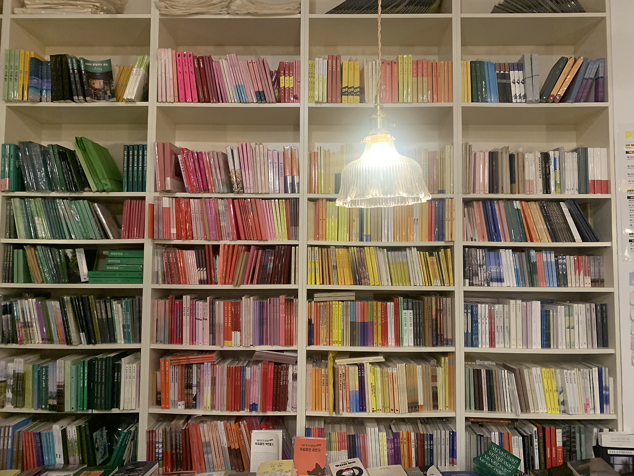 이곳의 특징은 책이 색깔별로 진열되어 있다는 것이었다. 내가 만들고 싶은 책과 비슷한 책을 찾아야 하는데 책이 주제별로 되어 있지 않고 색깔별로 되어 있다 보니 일일이 제목을 훑어봐야 했다. 안구를 좌에서 우로, 위에서 아래로 운동하며 책을 스캔하다 보니 기가 막힌 제목의 책들이 눈에 띄었다. ‘어떻게 이런 제목을 만들 수 있지’라며 작가님들의 센스에 감탄했다. 책 한 권을 고르고 근처의 서점으로 이동했다