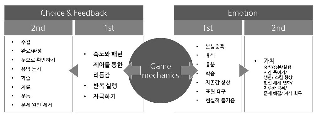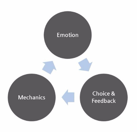 EMC 모델은 디자이너가 플레이어에게 기대하는 정서적 경험 설계의 궁극적 목적으로 삼아 이를 자극할 수 있는 행동을 게임 시스템의 규칙으로 반영하기 위한 디자인 지침을 제공한다.