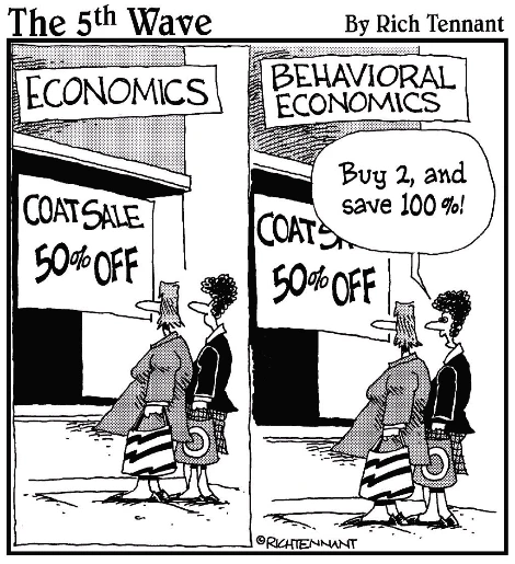 행동 경제학은 인간은 합리적인 동물이지만, 완벽하게 합리적이지는 않음을 인정하며 시작한다. 경제적 측면에서 가장 합리적인 선택에 도달하는 빈틈없는 인간과 비교하여 우리가 일상적으로 만나는 사람들 대부분은 사소한 배치와 주변 자극, 사회관계 속에서 상대적으로 합리적이지 않은, 숙고가 부족한 선택을 하게 되는 존재로 설명된다.