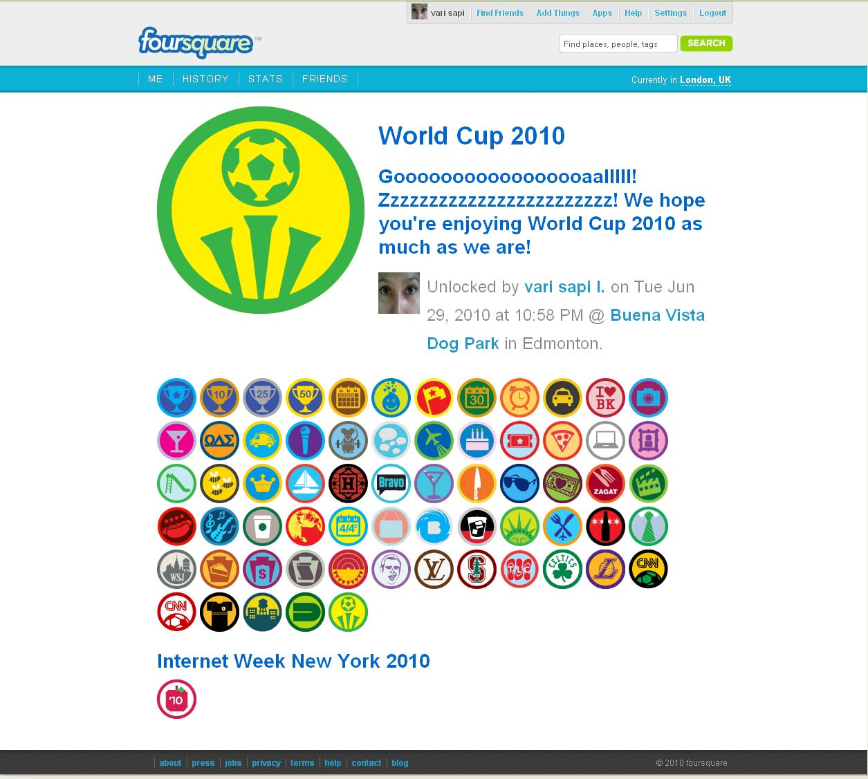 2014년, <포스퀘어(Foursquare)>는 모바일 SNS의 핵심 행동은 장소 기록 촉진을 위해 장소와 빈도, 방문 시간 정보를 조합하여 200여 종의 흥미로운 시각 상징으로 표현하고, 실시간 승부 조건에 바탕하는 경쟁적 피드백 시스템을 도입하여 크게 주목받았다.