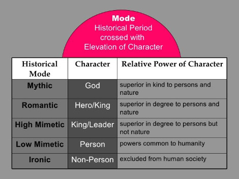 ② 로망스: 주인공의 우월성이 다른 이들에 비해 뛰어나지만, 극복할 수 없는 본질적인 것이 아닌 정도 차이라면 커뮤니티에서 주인공의 역할은 영웅적 인물이다.