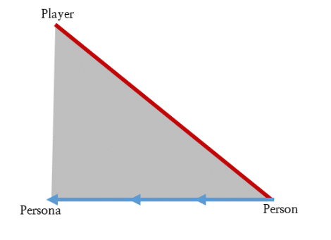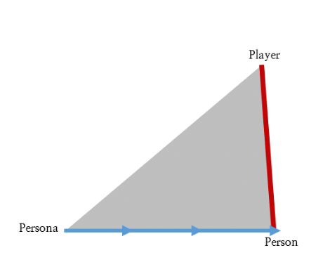 SNS 사용자는 플레이어로서 자신의 현실 자아인 퍼슨과 가상 사회에 속한 페르소나 사이의 거리를 조정한다. 퍼슨과 플레이어의 거리가 가까울수록 가상과 현실의 유사도는 높아져 페르소나의 표현과 행동은 현실 자아로서의 선택들과 더 많이 일치된 모습을 보인다. 퍼슨과 플레이어의 거리가 멀어질수록 페르소나가 속한 세계에 대한 현실의 구속력은 약화된다.