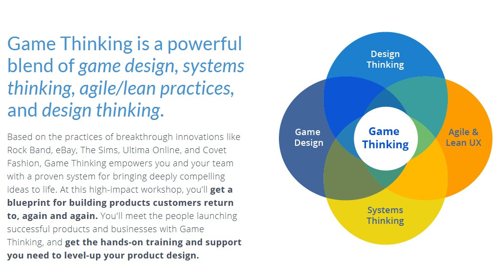 게임 씽킹을 활용하여 다수의 스타트업과 기업 고객을 컨설팅하는 킴 또한 본디 게임 디자인으로부터 용출된 게임 씽킹은 에자일/린UX, 디자인 씽킹과 시스템 씽킹의 장점을 흡수하며 오늘날 가능 빠르고 스마트한 혁신 방법론으로 활용되고 있음을 역설하고 있다.