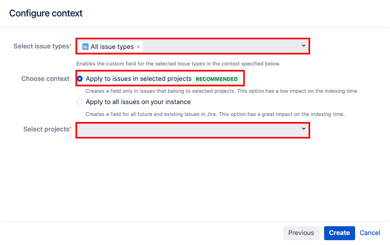 - Select projects: 생성된 필드를 적용하고자 하는 프로젝트 선택 (다중 선택 가능)