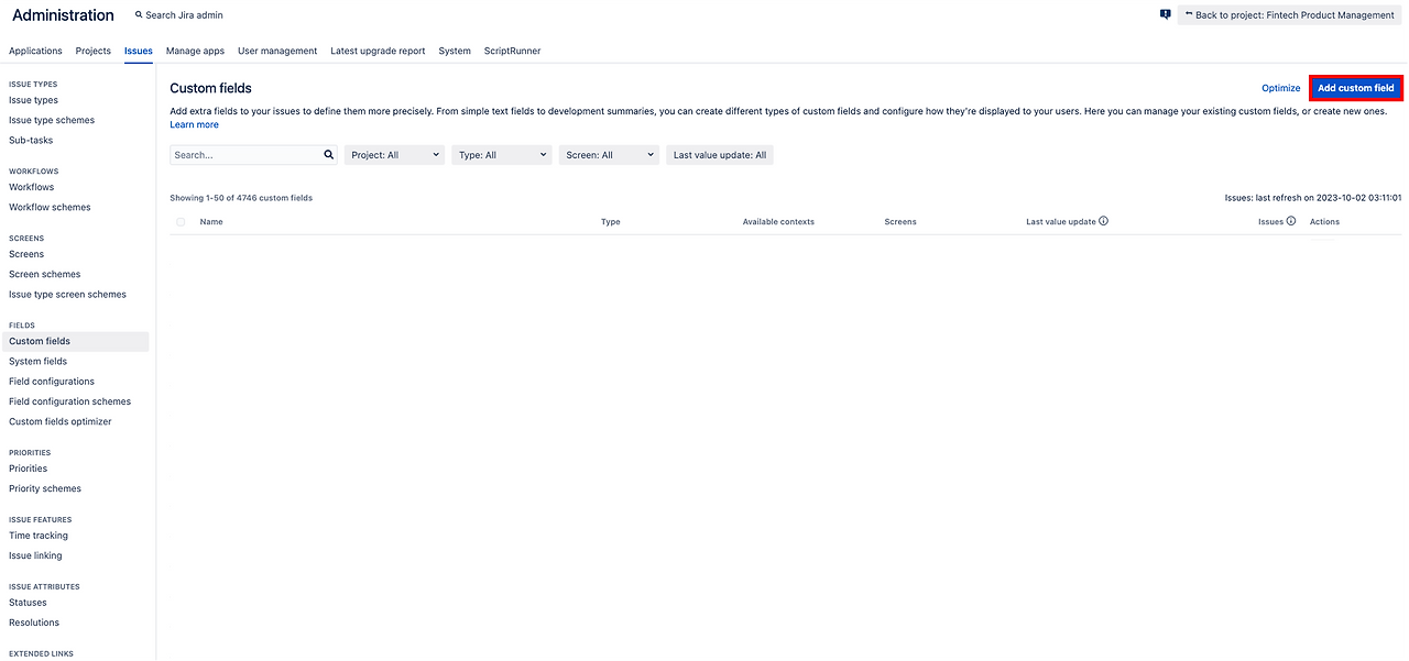 이슈 티켓 구분을 위해 커스텀 필드를 생성해 보자!