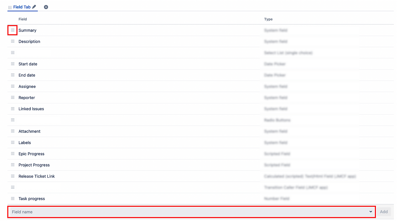 - 필드 순서 변경: 햄버거 버튼 클릭 후 위아래로 이동