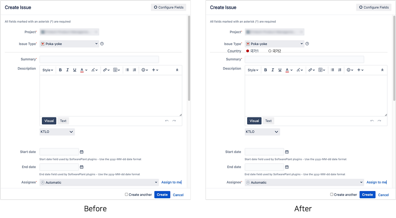 내가 BTS 어드민이 되고 처음 처리한 일은 바로 커스텀 필드 생성이었다. 한 개발팀 SDM 분의 요청으로 하나의 프로젝트에서 이슈 티켓을 생성할 때 국가를 구분할 수 있는 커스텀 필드를 생성한 것이다. 해당 개발팀은 두 국가의 시스템을 개발·운영하고 있는데 하나의 프로젝트에서 두개의 시스템에 대한 티켓이 생성되다 보니 리소스 관리가 어렵다는 이슈가 있었다. 물론 Component나 Label을 사용해서 국가를 표시할 수도 있었지만, 컴포넌트와 라벨은 리스트 방식(: 여러 목록 중 검색해서 추가하는 방식)이다 보니 사람들이 설정하지 않을 것 같다는 우려가 되어 오로지 국가만 선택할 수 있는 신규 커스텀 필드를 생성하기로 했다.