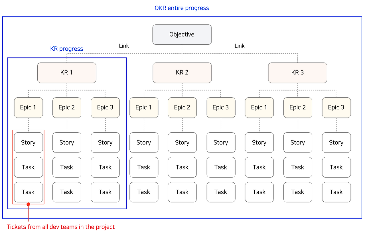 · 진행상황은 KR 및 Epic 단위로 관리되므로 Objective 티켓은 생성하지 않는다.