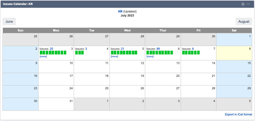 이슈 캘린더는 정말 유용한 가젯 중 하나이다. 배포 후 장애 모니터링 및 이슈 트래킹에 최적화된 가젯이므로 자주 활용하자.