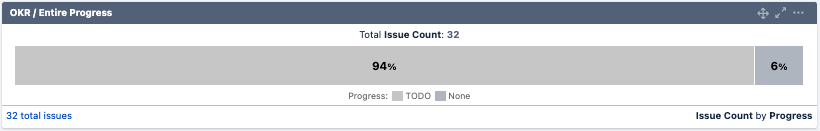앞서 만든 룰처럼 Objective 티켓은 따로 생성하지 않았지만, Epic의 모든 합이 KR을 구성하듯 KR의 합은 OKR이므로 상기와 같이 KR 티켓들을 모두 호출하는 쿼리를 짠다면 OKR 전체 진척도를 확인할 수 있다.