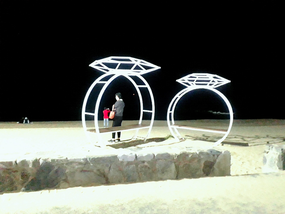 선배의 지인과 함께 선배 차에 올랐다. 가는 길에는 밤바다에 들러서 조촐하게 불꽃놀이도 했다.