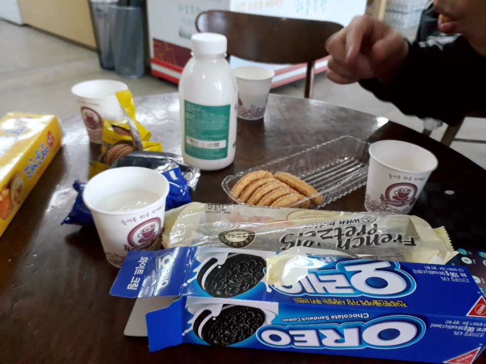 찍어먹을 과자도 좀 사고 몸 녹일 차도 좀 사서 같이 먹었더니 맛있었다.
