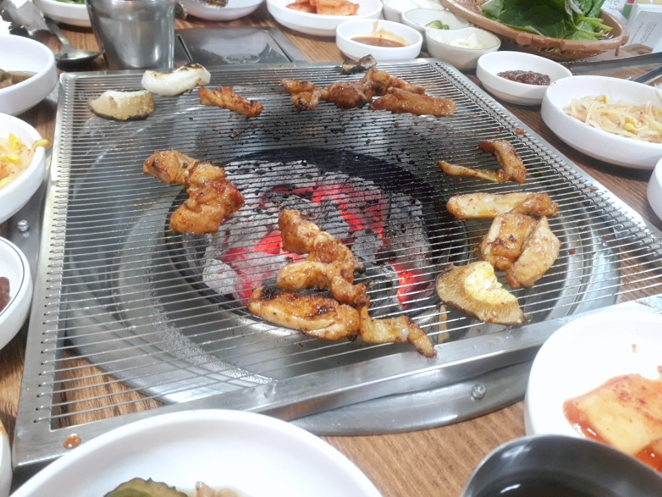 친구네 커플이 한 번 가 본 곳이었는데, 소금 닭갈비와 막국수의 조합이 일품이라고 했다.