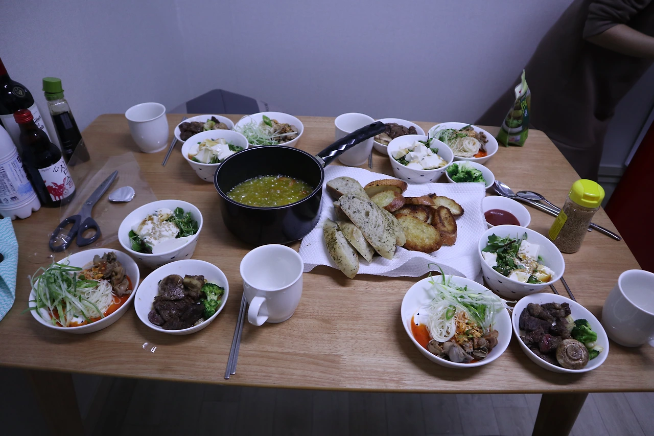 정신없이 자고 일어나니 친구네 커플이 투닥투닥 저녁을 만들고 있었다.