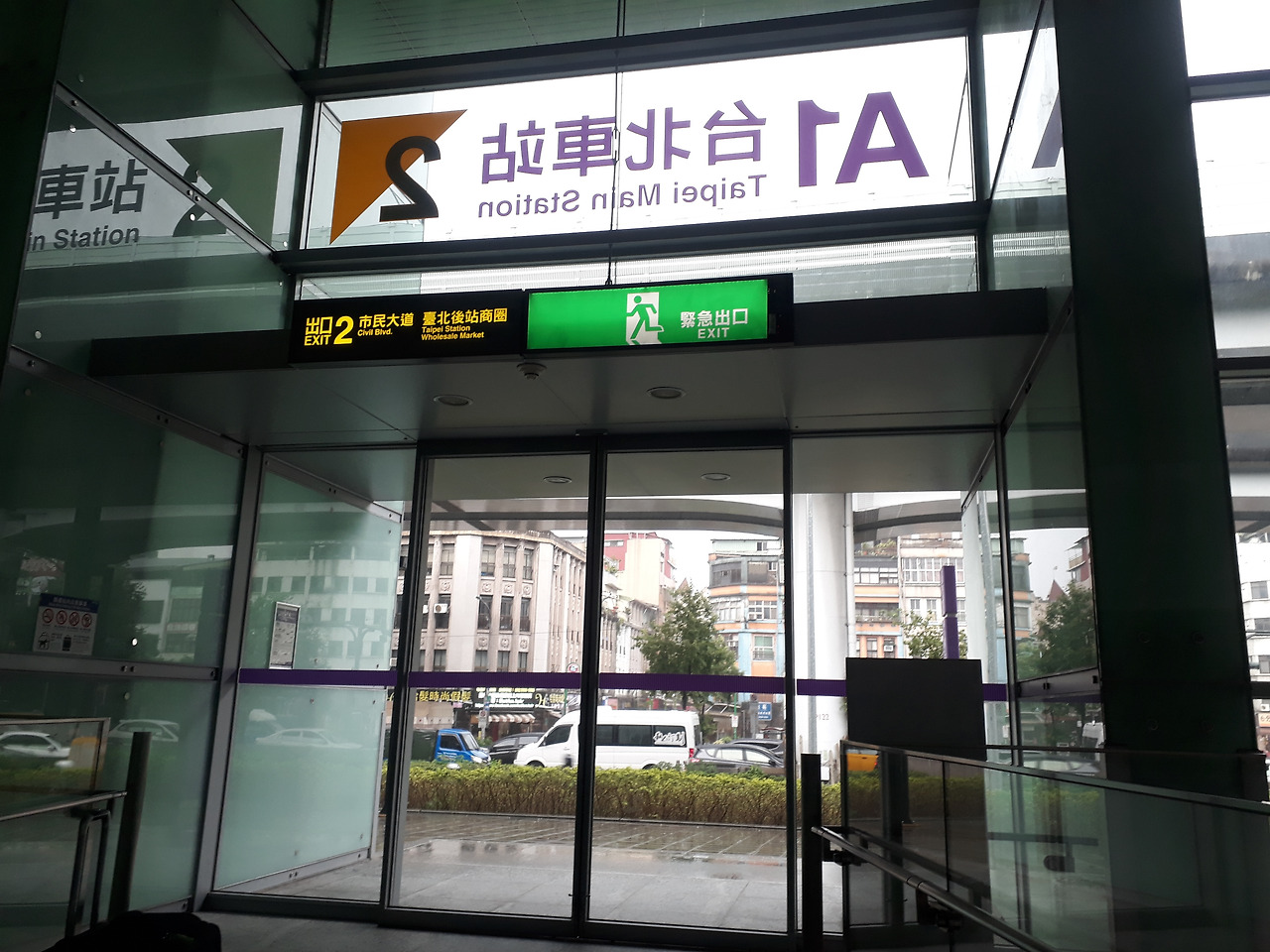 타이베역까지 가는 기차는 우리로 치면 누리로쯤 돼 보였다(왼쪽). 기차에서 내려 도착한 타이베이역 출구(오른쪽).