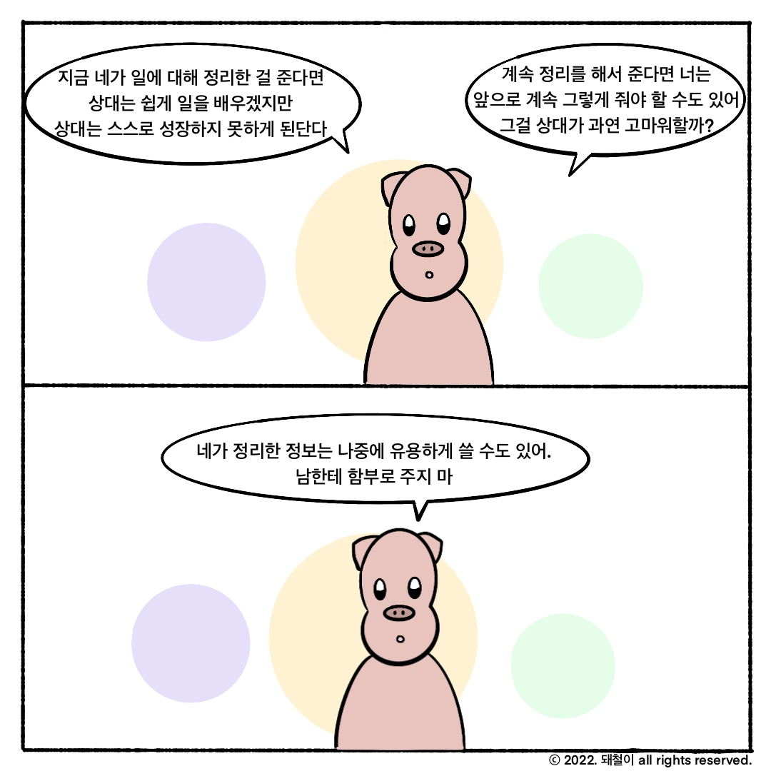 좋은 일이지만 정리를 한번 해서 주면 상대는 계속 정리를 해서 주는걸 원할 거고 그걸 당연하게 받아들일 거라고 하셨다