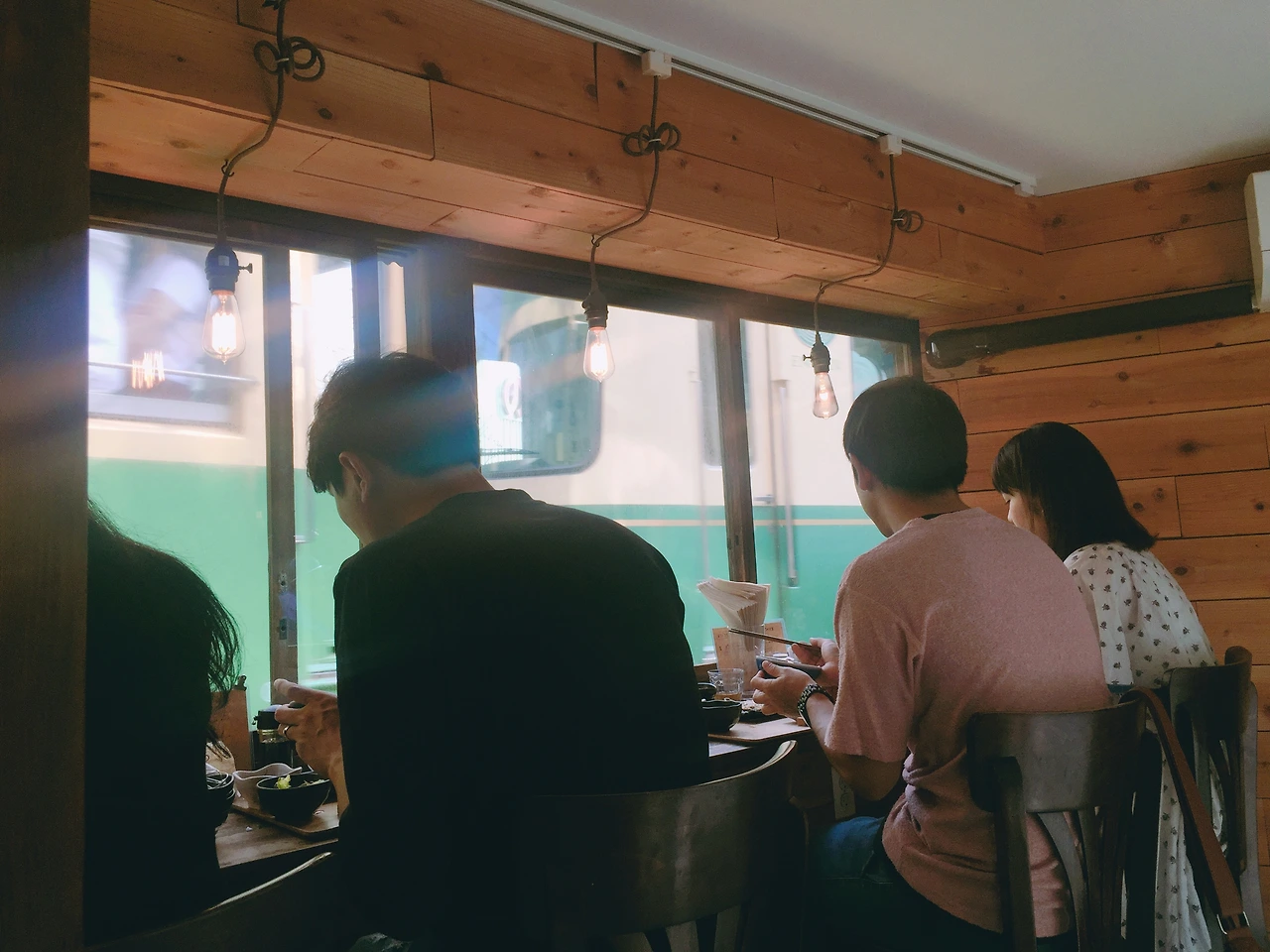 절에서 나와 버스를 타고 다시 가마쿠라 역으로 돌아갔다. 가는 길에 마침 식당에서 전화가 왔다. 대기 명단에 이름을 올리고 두시간 정도 지난 후였다. 식당 안은 한산했다. 공간 자체가 작기도 하지만 한 테이블이 비어 있어서 더 그렇게 느껴졌다. 대기 명단에 이름을 올릴 때 주문도 미리 해두었기 때문에 앉아서 기다리기만 하면 됐다. 식당 안에서 가장 인기있는 자리는 지나가는 열차를 보며 식사를 할 수 있는 곳인데 이미 다른 사람들이 식사를 하고 있었다. 음식이 나오는 데 시간이 조금 걸리긴 했지만 가게 분위기도 좋고 가끔씩 열차도 지나가고 하니까 지루하지 않았다. 드디어 음식이 나오고 미소 장국을 먼저 한입 먹었는데 엄청 맛있었다.! 음식에 대한 기대감이 올라갔다. 이 가게의 시그니처인 소금 고등어 구이와 간장 고등어 구이를 시켰고 사이드로 달걀을 두개 주문했다. 날달걀과 작은 그릇 두개를 가져다 주는데 먼저 노른자와 흰자를 분리하고 흰자를 휘저어서 잘 섞은 뒤 밥 위에 뿌린다. 그런 다음 노른자는 동그란 모양을 잘 보존해서 그 위에 살짝 올리면 된다. 비주얼 때문에 이런 방법을 안내해 주는 것 같았는데 나는 노른자와 흰자 분리 단계에서 이미 실패했기 때문에 그냥 다 섞어서 비벼 먹었다. 생선, 달걀밥, 야채반찬, 미소장국, 녹차 모두 맛있었다. 건강한 맛! 가격도 인당 만원 정도로 그리 비싸지 않았다. 그리고 직원분도 상당히 친절! (네이버 블로그에서 ‘개떡같이 말해도 찰떡같이 알아듣는 분이 있다.’는 글을 보고 갔는데 과연 정확한 표현이었다.)