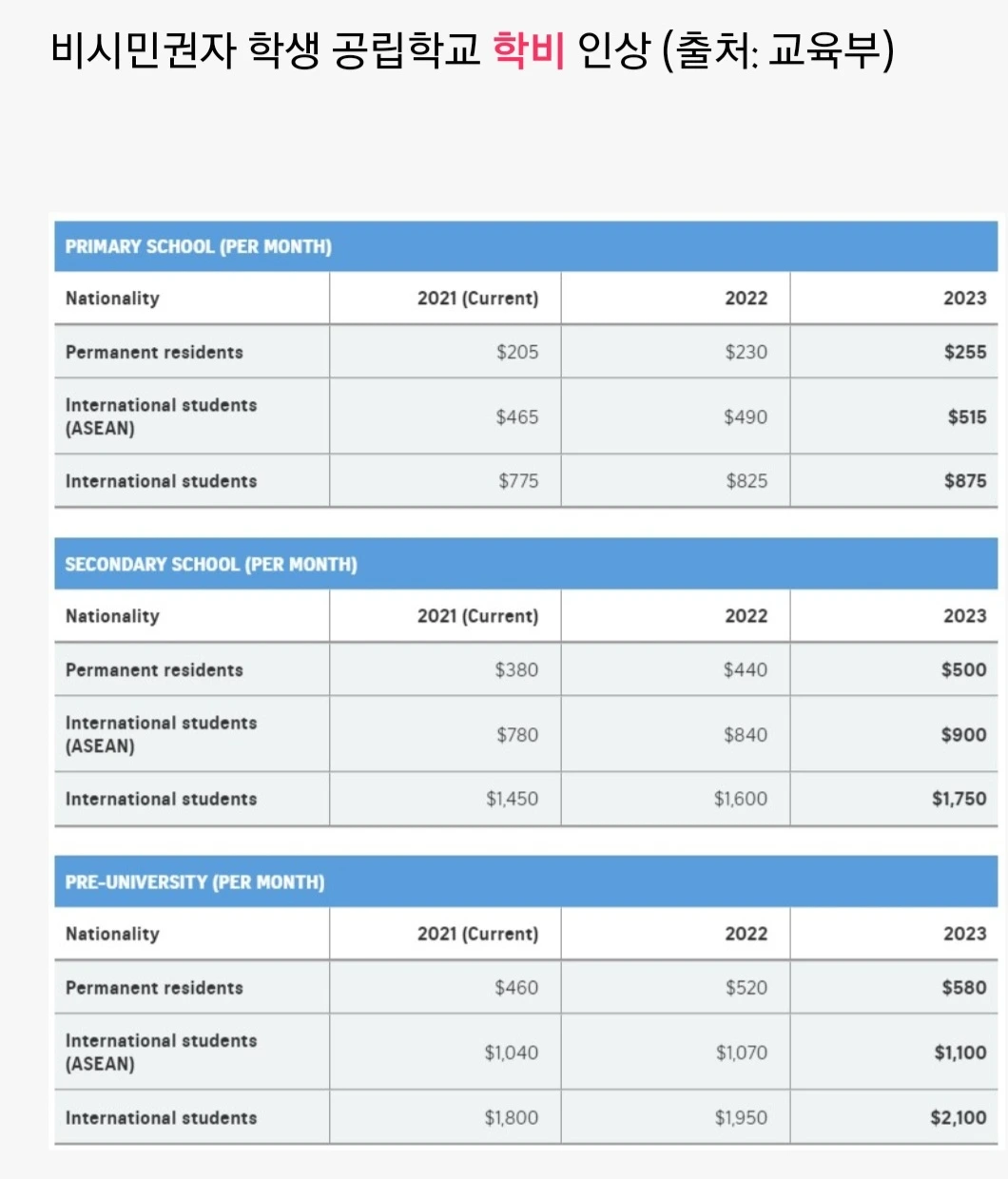 그렇다면 싱가포르 공립학교의 학비는 얼마일까요?