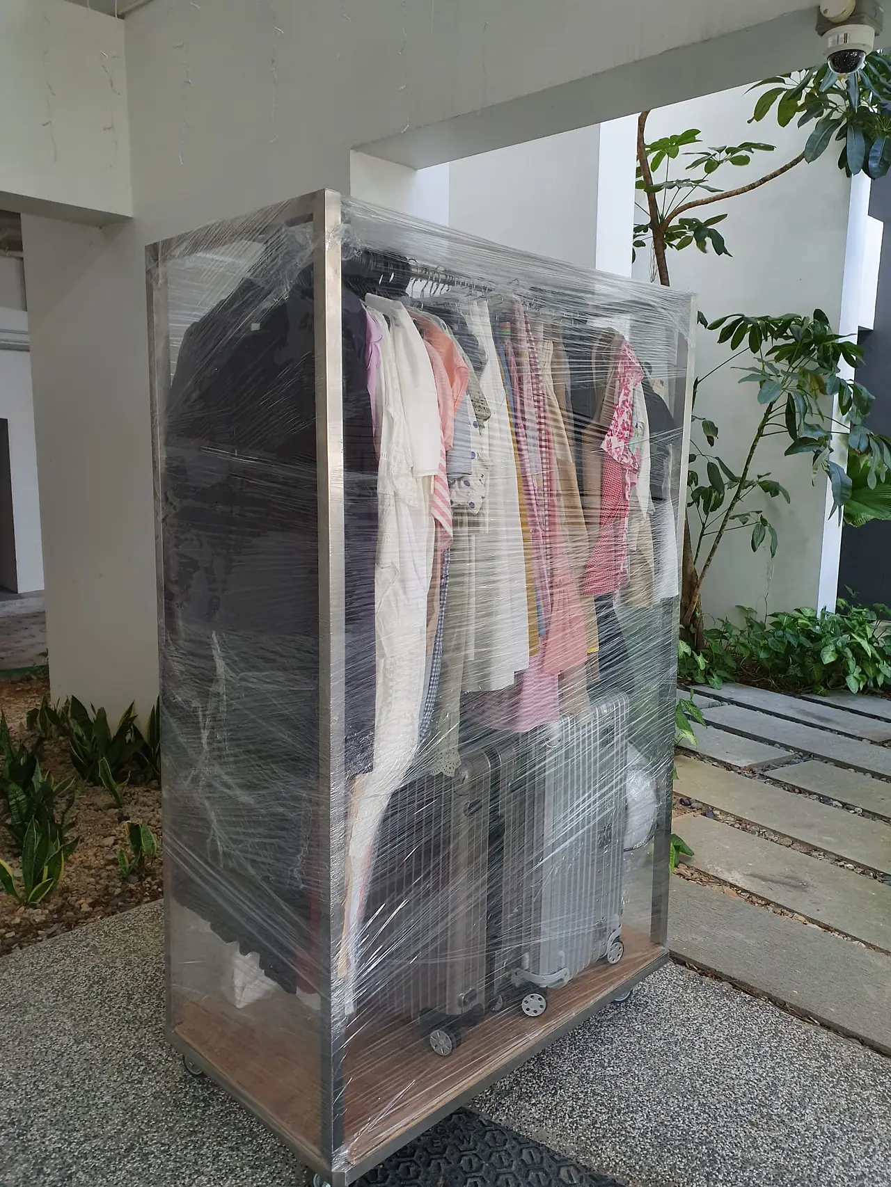 넷째, 이사당일 8am~9am 이사업체에서 사람들이 오는데 이삿짐의 양에 따라 5명에서 9명까지 와서 짐 나르기가 시작된다. 특이하게도 이곳에는 랩(비닐)을 많이 사용한다. 수레 같은데 박스를 쌓아 올리고, 박스가 넘어지지 않도록 랩으로 돌린 후 이동한다.