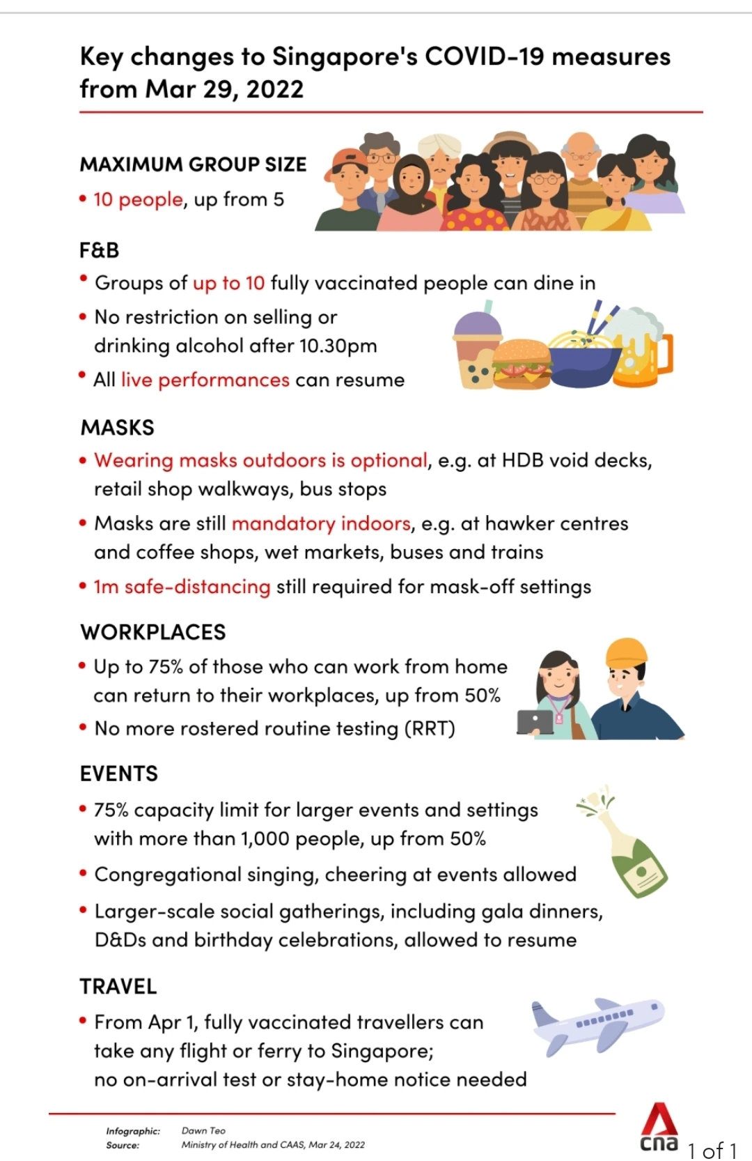 코로나로 인한 방역 제한 조치를 완화할 수 있는 상황이라고 판단한 싱가포르는 모든 조치를 코로나가 없던 그때로 하나씩 하나씩 돌리려 하고 있다.